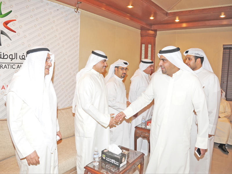 من اليمين: خالد المطوع وخالد المطيري وبشار الصايغ ومرزوق الغانم ومحمد الصقر ومبارك الخرينج وخالد الغانم