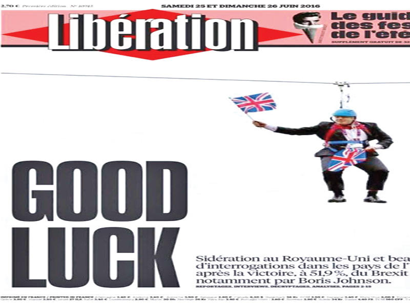 عكست عناوين الصحف الأوروبية الصادرة أمس البعد التاريخي لخروج بريطانيا من الاتحاد الأوروبي، وعبّر معظمها عن حزن الاتحاد على قيمه، داعية إلى صحوة لضمان بقائه.واختارت صحيفة "هاغشه كورانت" الهولندية صوراً تشبه الوجوه التي تعبر عن صرخة رعب في لوحات الفنان التعبيري ادفارد مونش الشهيرة "الصرخة"، في رسوم تعكس حزن المستشارة الألمانية انغيلا ميركل، ورئيسي الوزراء الهولندي مارك روتي وديفيد كاميرون.وتحدثت صحيفة "البايس" اليسارية الإسبانية من جهتها عن "كارثة" و"انتصار رمزي كبير لكل اعداء المشروع الأوروبي"، بينما هنأت "تاتس" الألمانية بسخرية الشعبويين البريطانيين على فوز "يهز القارة".وكتبت صحيفة "ليبيراسيون" اليسارية الفرنسية أن بحر "المانش لم يعد مضيقا بل هوة". وأضافت ان "اوروبا بيت مشترك. انه يحترق".وكغيرها من الصحف الأوروبية، حاولت "ليبيراسيون" فهم ما حدث. وكتبت ان "البريطاني يرفض المشروع الاوروبي بقدر فقره وتقدمه في السن. الطبقات الشعبية في كل القارة لم تعد تؤمن به. انها تلتفت الى الأمم بصفتها الملاذ الوحيد القابل للمصداقية في مواجهة تجاوزات العولمة".وقالت صحيفة "فيبورغا" البولندية "انه نبأ سار لأعداء التكامل الأوروبي، الشعبويين واتباع الانانية الوطنية والانعزالية وكره الاجانب".وكتبت صحيفة "لا ستامبا" في عنوانها الرئيسي "خيانة من بلد البيتلز"، و"عودة الانانية الوطنية". أما صحيفة "ال سولي 24 اوري" فكتبت "اوروبا استيقظي".ورأت صحيفة بيلد الشعبية الألمانية ان رحيل بريطانيا ينذر بأيام قاتمة لأوروبا، متوقعة "أشهرا إن لم يكن سنوات من عدم اليقين". وحيت صحيفة "بوليتيكن" الدنماركية اوروبا (الرسامين) بروغيل وبروغل وديغا التي "عانت طويلا وابدعت كثيرا"، ونسبت هذا الفشل الى "عدد كبير من المسؤولين" على رأسهم رئيس الوزراء البريطاني ديفيد كاميرون والدبلوماسيون الأوروبيون.