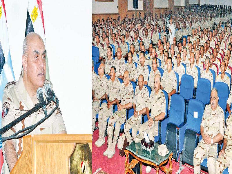 على صعيد آخر، قال وزير الدفاع الفريق أول صدقي صبحي، إن تأمين حدود مصر وحماية أمنها القومي مهمة مقدسة لا تهاون فيها، وأن القوات المسلحة تعمل بأقصى درجات اليقظة والاستعداد لفرض سيادة الدولة، وتأمين حدودها البرية والساحلية، والتصدي بكل حسم لكل من تسول له نفسه المساس بأمن مصر ومقدراتها.وزير الدفاع أشاد خلال لقائه القوات في المنطقة الجنوبية العسكرية، أمس الأول الجمعة، بالدور البطولي لمقاتلي المنطقة الجنوبية العسكرية في الدفاع عن تراب مصر وحماية أمنها القومي عبر حدودها الجنوبية، مشيرا إلى أن القوات المسلحة مؤسسة وطنية تمارس مهامها بتجرد تام في حماية الوطن.إلى ذلك، أحبطت قوات الأمن شمالي سيناء محاولة تنفيذ هجوم إرهابي على قسم شرطة الشيخ زويد، أمس السبت، وتمكنت القوات من تصفية اثنين من العناصر التابعة لتنظيم ما يسمى بـ"أنصار بيت المقدس".