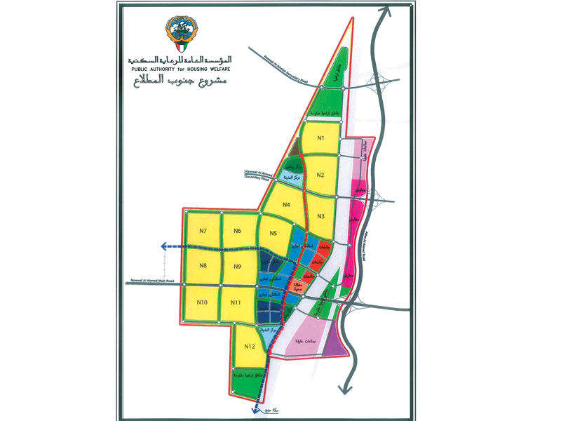من جانبه، أوضح م. الوقيان أن موعد إصدار اول ترخيص بناء في المدينة في ديسمبر 2018، متوقعاً أن يتم توقيع العقد الثاني والخاص بإنشاء البنية التحتية لثماني ضواح فيها بإجمالي 18500 قسيمة نهاية العام الحالي، حيث تقوم المؤسسة حالياً بتأهيل المقاولين العالميين، وسيتم طرح المشروع في سبتمبر المقبل.وقال الوقيان في تصريح صحافي على هامش توقيع العقد، إن "هذا العقد هو الأكبر في تاريخ المؤسسة، وتبلغ قيمته نحو 288 مليون دينار كويتي، وهو خاص بإنشاء وإنجاز وصيانة الطرق الرئيسية وشبكات البنية التحتية لمدينة جنوب المطلاع، التي تضم 30 الف وحدة سكنية، وتستوعب 400 ألف نسمة"، مضيفاً ان "المؤسسة وزعت في السنة المالية الماضية 12777 قسيمة على المواطنين، وستوزع خلال السنة المالية الحالية 11338 قسيمة".وأشار إلى أن المؤسسة سترفع تاريخ التخصيص على المشروع حتى 31/ 12 /2011 وما قبل ابتداء من مطلع الشهر الجاري، مفيداً بأن مدة مشروع مدينة جنوب المطلاع 4 سنوات تشمل 12 ضاحية سكنية.بدوره، قال النائب فيصل الكندري، إن "مشروع جنوب المطلاع سيساهم في حل جزء كبير من المشكلة الإسكانية"، مؤكداً حرص السلطة التشريعية على دعم خطط ومشاريع الإسكان التي اعتبرها المجلس من أهم أولوياته وحرص على إنهاء هذا الملف. ولفت رئيس لجنة أهالي مدينة جنوب المطلاع السكنية خالد العنزي، إلى "جهود المؤسسة بقيادة وزير الدولة لشؤون الإسكان ياسر ابل وكل قياديي الرعاية السكنية تجاه إنجاز المشروع الأضخم على مستوى البلاد من حيث المساحة والاستيعاب لأعداد كبيرة من اصحاب الطلبات الاسكانية"، مشيرا إلى أن اللجنة منذ وقت توقيع العقد مساء أمس بدأت عملها الأساسي الذي أنشئت من أجله، وهو متابعة الأعمال وإنجازها وفق الجدول الزمني المحدد لها سلفاً، بالإضافة إلى متابعة إنجاز العقد الثاني إلى جانب العقود الأخرى.النصف: نعمل على تنظيم سوق العقار وتشريع قانون لاتحاد الملاك