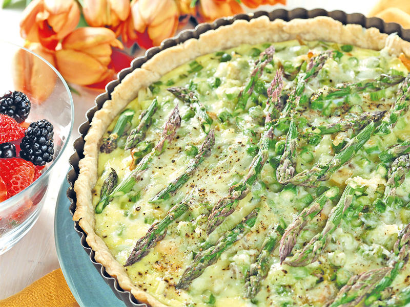 يبلغ موسم الهليون والبازلاء الطازجة ذروته مع حلول فصل الصيف. تبدو هذه الأصناف جميلة في أي طبق وبالكاد تحتاج إلى الطبخ. يكون الهليون النيء المقشور أو المقطّع إلى شرائح رفيعة مناسباً في حشوة الفطائر. ولا تحتاج البازلاء الطازجة إلى أكثر من دقيقة طبخ قبل إضافتها. ويمكن توفير الوقت عبر شراء البازلاء المقشّرة التي تباع في أكياس جاهزة داخل قسم المنتجات الطبيعية في بعض متاجر البقالة، وإلا تشكّل البازلاء المجمّدة (والمذوّبة) بديلاً سريعاً.