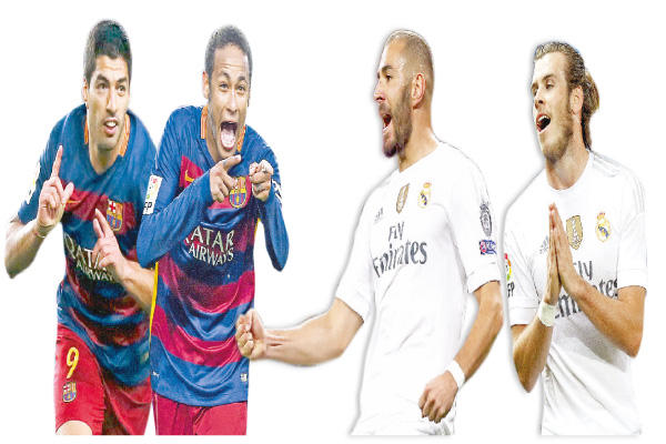 ويعد الفريقان الأكثر عراقة في تاريخ الدوري، إذ حصد ريال مدريد اللقب 32 مرة مقابل 23 للفريق الكاتالوني، وهما على مسافة بعيدة من اقرب المطاردين اتلتيكو مدريد (10 ألقاب).لكن علامة الاستفهام الكبرى تكمن في امكانية مشاركة نجم برشلونة الارجنتيني ليونيل ميسي الغائب عن الملاعب منذ شهرين بعد تعافيه من الإصابة وعودته إلى التمارين قبل ايام قليلة.وتألق الاوروغواياني سواريز والدولي البرازيلي نيمار دا سيلفا بشكل لافت في غياب ميسي صاحب الكرة الذهبية 4 مرات، وذلك بتسجيل كل منها 10 أهداف وسجلا معاً الأهداف الـ17 الأخيرة لبرشلونة في الدوري، ولكن رغم العروض الرائعة لقائد السيليساو فإن الأوروغوياني أكد أن الأفضلية في الفريق لم تتغير، حيث يبقى "ليو أفضل من أي لاعب بالنظر الى ما قام به وسيواصل القيام به".وقال سواريز "لا أعتقد اننا سنحسم لقب الليغا في حال فزنا وابتعدنا بفارق 6 نقاط، أو إذا تعادلنا امام الريال. من المبكر جدا معرفة من سيفوز بلقب الليغا. إنه مشوار طويل جدا وصعب جدا. هناك ايضا اتلتيكو مدريد الذي سيقاتل من اجل الفوز باللقب".الريال يأمل عودة بنزيمةوفي الطرف المقابل، يأمل ريال مدريد استعادة مهاجمه الفرنسي كريم بنزيمة، بعد تعرضه لإصابتين الاولى في عضلات فخذه، والثانية قضائية اثر ملاحقته قانونيا لمشاركته في فضيحة ابتزاز زميله في المنتخب الفرنسي ماتيو فالبوينا بشريط إباحي.وقد تكون مباراة اليوم ثالث مواجهة فقط هذا الموسم يستهل فيها ريال المباراة بنجومه الثلاثة البرتغالي كريستيانو رونالدو، والويلزي غاريث بايل، وبنزيمة، اذ تأثر ريال ببداية موسم بطيئة لم يكن مقنعا فيها إلى جانب معاناته من اصابات مختلقة ومشكلات تمركز للاعبي المدرب رافايل بينيتيز.ورأى بايل الذي ينتقد راهنا لعدم ارتقائه الى مستوى المناسبات الكبرى: "أشعر بالقوة، وجاهز لخوض المباراة والمعركة. اريد تقديم الأفضل ومساعدة الفريق على الفوز".ويأمل بينيتيز الاعتماد على تشكيلة شبه كاملة بعد تعافي الحارس الكوستاريكي كيلور نافاس، والمدافع سيرخيو راموس والظهير البرازيلي مارسيلو من إصابات تعرضوا لها قبل اسبوع المباريات الدولية.ورغم استعادة رونالدو شهيته التهديفية وتسجيله 13 مرة في اخر 15 مباراة، فإن الدون، الذي تسري تكهنات كبيرة حول تركه الفريق الملكي، فشل بهز الشباك في 9 مباريات هذا الموسم، من بينها مباراتا اتلتيكو مدريد واشبيلية اللتان اهدر ريال فيهما النقاط، ومباراتا دوري الأبطال ضد باريس سان جرمان الفرنسي. باقي المبارياتمن جانبه، يأمل سيلتا فيغو الرابع ومفاجأة بداية الموسم، العودة الى طريق الفوز عندما يستقبل ديبورتيفو لا كورونيا التاسع بعد فوزه مرتين فقط في آخر ست مباريات.وفي باقي المباريات، يلعب ريال سوسييداد مع اشبيلية، وإسبانيول مع ملقا، وفالنسيا مع لاس بالماس.رفع التعزيزات الأمنية 6 أضعافقررت السلطات الإسبانية زيادة التعزيزات الأمنية لمباراة الكلاسيكو بين ريال مدريد وبرشلونة اليوم على ملعب سانتياغو برنابيو 6 أضعاف العدد المعتاد من أفراد الأمن في مثل هذه المواجهات.وسيشارك أكثر من 2500 من أفراد الأمن في تأمين المباراة التي تقام وسط مخاوف في أوروبا من وقوع هجمات إرهابية من تنظيم الدولة الإسلامية (داعش) الذي نفذ مساء الجمعة الماضي هجمات دموية في باريس.وإضافة إلى أكثر من ألف و200 من أفراد الشرطة الإسبانية، سيشارك 122 من أمن بلدية مدريد (42 ضعف العدد المعتاد) وألف و195 من أفراد أمن الشركات الخاصة، و80 عاملا بطوارئ العاصمة و60 من الصليب الأحمر في تأمين اللقاء.وقالت مندوبة الحكومة في مدريد، كونسيبسيون دانكاوسا إنه "تم تعزيز الإجراءات بالنظر إلى اللحظة الاستثنائية التي نمر بها".وطالبت المسؤولة المواطنين وبخاصة الـ80 ألف مشجع المقرر حضورهم للمباراة، بالتعاون والتحلي بالمسؤولية، وأكدت في الوقت نفسه ضرورة تحلي أفراد الأمن بـ"الثقة المطلقة والعمل بمهنية وفاعلية"، من أجل ضمان سير المباراة بشكل طبيعي.وأضافت "يجب ألا نحيا 
