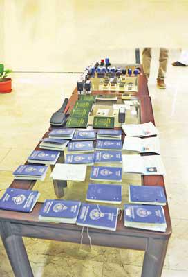 عثر بحوزته على جوازات سفر كويتية وتنزانية وعراقية و«بدون» ومعاملات بنكية وأختام حكومية