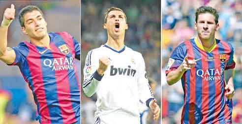 أضحى الأرجنتيني ليونيل ميسي والأوروغواياني لويس سواريز (برشلونة) والبرتغالي كريستيانو رونالدو (ريال مدريد) مرشحين نهائيين لجائزة الاتحاد الأوروبي لكرة القدم (يويفا) لأفضل لاعب في موسم 2014-2015 والتي ستعلن في 27 الجاري.وقدم صحافيون من كل واحد من الاتحادات الـ54 التي تشكل (يويفا) قائمة بأسماء خمسة لاعبين حصل الأول منهم على خمسة نقاط والثاني على أربعة وهكذا.