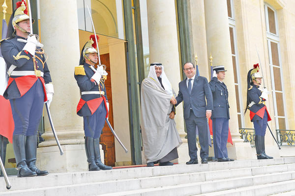 وفي بيان أصدره مكتب الرئاسة الفرنسية، كشف هولاند عن اعتزام البلدين إنشاء صندوق من القطاعين العام والخاص، لتمويل المشاريع والصناعات الصغيرة والمتوسطة في القطاعات الاستراتيجية في فرنسا.وبينما أثنى الرئيس الفرنسي على إسهامات الكويت في الحرب ضد تنظيم الدولة الإسلامية (داعش)، أكد أنه سيجري التوصل خلال زيارة وفد الكويت، التي تستمر يومين، إلى العديد من الاتفاقيات الثنائية في مجالات مختلفة، معتبراً الزيارة «خطوة جديدة» لتعزيز العلاقات والشراكة بين البلدين. وأضاف أنه سيتم التوصل إلى اتفاق شراكة في مجال الأمن والدفاع، إلى جانب اتفاق آخر يعزز التعاون الثقافي والعلمي، مشيداً بالجهود التي تبذل حالياً لتعزيز التعاون الإعلامي بين البلدين.وعلى الصعيد نفسه، قال مصدر لـ»رويترز» إن فرنسا ستوقع مع الكويت اليوم اتفاقات دفاعية مبدئية بقيمة 2.5 مليار يورو، مبيناً أن أحدها يتعلق بتوريد طائرات هليكوبتر من صنع إيرباص بقيمة مليار يورو.وأضاف المصدر أن هناك حديثاً يتردد عن صفقة شراء 24 طائرة هليكوبتر ثقيلة من طراز كاراكال منذ يونيو الماضي، حينما قال مسؤولون فرنسيون إنه تم الاتفاق عليها بصورة مبدئية أثناء زيارة وزير الدفاع الفرنسي جان إيف لودريان للكويت. وأوضح أنه من المقرر اليوم كذلك توقيع الجانبين «خطابات قبول» غير ملزمة بشأن عقود بـ1.5 مليار يورو لشراء مركبات برية من صنع شركة «رينو» للشاحنات التابعة لشركة فولفو، فضلاً عن تطوير زوراق دورية.
