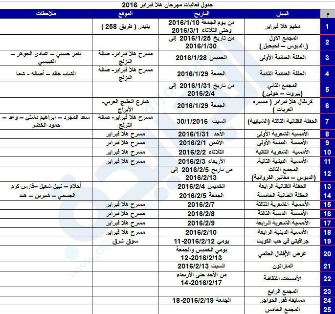 «هلا فبراير 2016» ينطلق 28 الجاري بفعاليات متنوعة