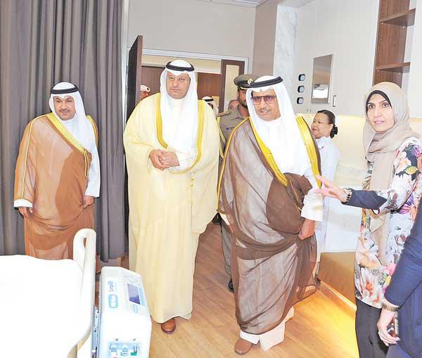 وأضاف د. العبيدي ان «هذا المشروع ضمن سلسلة مشاريع تقام بنظام التصميم والبناء والتجهيز والصيانة، كما روعي خلال تصميمه أن تحتوي الغرف العامة على سرير أو سريرين على ابعد تقدير، فضلا عن وجود غرف عزل للمرضى». وأشار إلى أنه تم تقديم عرض مرئي أمام سمو رئيس مجلس الوزراء عن أبرز المشاريع المقبلة ضمن خطة التنمية للوزارة، حتى عام 2020، حيث تم استعراض مشاريع مستشفيات الأميري، والكويت للسرطان، والعدان، والفروانية، والأمراض السارية، وأعمال الحفر والبناء فيها، بالإضافة إلى أن مستشفيات ابن سينا والعلاج الطبيعي الجديدين في طور الاعداد والتحضير ووضع الشروط الفنية لهما. ولفت إلى أن الوزارة تتابع بشكل مستمر آخر مراحل الإنجاز في مستشفى جابر الأحمد، بالتعاون والتنسيق مع وزارة الاشغال، لاسيما مع قرب تشغيله بشكل رسمي، على أن يتم بشكل تدريجي لضمان دراسة ورصد أي اخطاء قد تقع أمام الفرق العاملة من الوزارة فيه.وأشاد العبيدي بحرص سمو رئيس مجلس الوزراء على متابعه تنفيذ المشروع، لافتا إلى أن حضوره وافتتاحه المشروع يجسد موقع «الصحة» كأولوية تنموية رئيسية ببرنامج عمل الحكومة. وأشار إلى أن حرص سموه على تطوير الخدمات الصحية في البلاد أثمر عن إنجازات عدة حققتها دولة الكويت بشهادة منظمة الصحة العالمية والمنظمات الدولية الأخرى، التي ذكرت في تقاريرها ان دولة الكويت حققت الاهداف اﻻنمائية للالفية الثالثة ذات العلاقة بالصحة بصفة خاصة، من حيث ارتفاع متوسط العمر المأمول عند الوﻻدة ليصل الى 78.5 عاما للكويتيين (75.3 للذكور، و81.1 للاناث)، و79.7 عاما لغير الكويتيين عام 2013. وذكر «كما شملت اﻻنجازات انخفاض معدل وفيات الرضع واﻻطفال اﻻقل من 5 سنوات ومعدﻻت وفيات الأمومة، وحققت الكويت معدﻻت مرتفعة للتغطية بالتطعيمات الواقية من امراض الطفولة التي يمكن الوقاية منها عن طريق التطعيمات والتصدي للعدوى باﻻيدز والسل والملاريا، وتوفير التغطية الصحية الشاملة للمواطنين والمقيمين، وفقا للمعايير والمواصفات العالمية».أحدث المعداتوقال العبيدي إن افتتاح مستشفى الرازي الجديد بعد تأثيثه وتجهيزه بالصورة التي نراها اﻻن يحقق زيادة بالسعة السريرية لمستشفى الرازي بنسبة 80 في المئة، ويصبح بذلك عدد اﻻسرة اﻻجمالي بعد انجاز المشروع 450 سريرا بتكلفة 31 مليونا و45 الف دينار، وبمساحة اجمالية 28 الف متر مربع.وأضاف ان المبنى يشمل اقامة 10 طوابق جديدة تضم عشرة اجنحة، في كل جناح 24 سريرا من بينها عشر غرف سرير واحد، وست غرف بسريرين، إضافة إلى غرفتين للعزل بكل جناح، وتم تصميمها وتجهيزها بأحدث المعدات وفقاً للمواصفات العالمية، وبما يتفق مع معايير واشتراطات منع العدوى وسلامة المرضى وتحقيق الخصوصية، باﻻضافة الى تجديد شامل وتوسعه للعمليات الرئيسية وعمليات الحوادث، ليصبح اجمالي عدد غرف العمليات 12 غرفة تم تصميمها وتجهيزها على احدث مستوى، فضلا عن قسم للاشعة والعلاج الطبيعي ومكاتب للادارة وخدمة التشغيل.وتابع أن ما حققته الكويت من إنجازات صحية وتنموية تشهد بها المنظمات الدولية والإقليمية والعربية، ما كان له أن يتحقق إلا بتوفيق من الله عز وجل، ثم بالرؤية الصائبة والواعية للقيادة الرشيدة بالبلاد، وبفضل امتداد جسور التعاون الإيجابي والبناء بين السلطة التشريعية، وما يقدمه أعضاء مجلس الأمة من تشريعات ومقترحات وآراء ومبادرات ايجابية لدعم النظام الصحي بالبلاد، وإصدار القوانين اللازمة لذلك، ومراقبة الأداء والسلطة التنفيذية بقيادة سمو رئيس مجلس الوزراء وتعاون الوزراء والأجهزة الحكومية وغير الحكومية والمجتمع المدني بالبلاد، والذين يتفقون جميعاً على هدف واحد هو أن الصحة هي القاطرة الرئيسية والمكون الأساسي للتنمية الشاملة والمستدامة. وأوضح العبيدي أنه بدون الاهتمام بالصحة، وتقديم الدعم اللازم للنظام الصحي، سيصعب تنفيذ الخطط والبرامج التنموية، ويتعذر الانطلاق بقوة الدفع اللازمة نحو تنفيذ الأهداف العالمية للتنمية المستدامة للأعوا