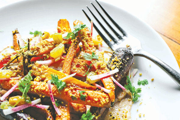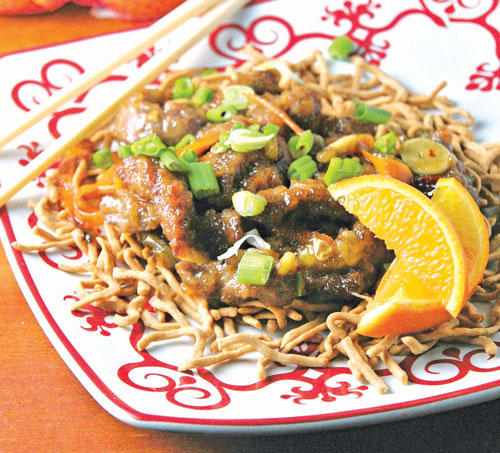 ما رأيك أن تعدي سكاكر قشر البرتقال بسلق القشرة بالكامل مع اللب في كمية من الماء توازي ثلاثة أضعاف حجمها، ثم اتركيها لتغلي في القطر على نار هادئة (نحو كوبين من السكر وكوب من الماء) إلى أن تطرى وتتشرب القطر؟أو يمكنك تحمير البرتقال. يضيف التحمير نكهة مميزة إلى حلاوة هذه الفاكهة ويطري مرارة القشرة. تستطيعين بالتأكيد القيام بهذه الأمور كافة مع أي صنف من أصناف البرتقال من الليمون الهندي إلى اليوسفي. ولكن عندما تستخدمين البرتقال أبو صرة، فستبتكرين وصفات لا تقاوم بلا شك.جزر وبرتقال محمصان مع الكمون(5 )مدة التحضير: 50 دقيقة.المقادير: - كليوغرام من الجزر يفضل أن يكون بألوان متنوعة، مقشر ومقطع بالطول إلى نصفين ومن ثم إلى أرباع.- برتقالة غير مقشرة ومقطعة إلى شرائح بالغة الرقة.- بصلتان مفرومتان فرماً ناعماً.- ملعقة صغيرة من بذور الكمون.- ملعقة صغيرة ونصف الملعقة من ملح كوشر.- فلفل أسود مطحون طازج.- 3 ملاعق كبيرة من زيت الزيتون.- ملعقتان كبيرتان من عصير البرتقال الطازج.- نصف كوب من اللبنة.- ربع كوب من بذور اليقطين المحمص والمملح.الطريقة:* حمي الفرن على حرارة 190 درجة مئوية. وغطي داخل صينية بورق الألمنيوم.* وزعي الجزر، البرتقال، والبصل داخل الصينية ورشي فوقها بذور الكمون، الملح، والفلفل الأسود، فضلاً عن زيت الزيتون وعصير البرتقال. قلبي هذه المكونات إلى تمتزج بالكامل.* صفي شرائح البرتقال والجزر في الصينية بشكل متلاصق لتكون طبقة واحدة. أبقي الصينية في الفرن إلى أن تملأ رائحة البرتقال المطبخ ويبدأ بالتلون، أي نحو 20 دقيقة.* قلبي البرتقال والجرز بواسطة ملعقة مسطحة وواصلي التحمير إلى أن يطرى الجزر ويصبح لونه ذهبياً بعض الشيء، أي نحو 10 دقائق إضافية.* وزعي الخضروات في أطباق وأضيفي إليها اللبنة ورشي فوقها بذور اليقطين. قدمي الطبق ساخناً أو وفق حرارة الغرفة.سلطة البرتقال بالكينوا والفيتا(6 )مدة التحضير: 55 دقيقة.المقادير: - 850 غراماً من البرتقال، أي ما يعادل الكوبين تقريباً.- ربع بصلة حمراء.- كوب كينوا.- كوب وثلاثة أرباع كوب من الماء.- ملح.- نصف ملعقة صغيرة إلى ملعقة صغيرة من فلفل سيرانو.- ثلاثة أرباع كوب من أوراق الجرجير المقطعة.- نصف كوب من الجوز المحمص والمقطع.- ملعقتان صغيرتان من زيت الزيتون.- نصف كوب من فتات الفيتا.- قليل من الفجل المقطع.الطريقة:* ابرشي البرتقال واحتفظي بالبرش، ثم قشريه وقطعيه عرضياً إلى شرائح رقيقة. قطعي بعد ذلك كل شريحة إلى أرباع وضعيها جانباً. يجب أن تحصلي على كوبين من قطع البرتقال.* قطعي البصل الأحمر عرضياً إلى عيدان رقيقة. يُفترض أن تحصلي على ثلث كوب. انقعي البصل في الماء البارد لتخفيفي من حدته.* ضعي الكينوا في المصفاة واغسليه بالماء البارد الجاري إلى أن يصبح الماء صافياً، أي نحو دقيقة إلى اثنتين. صفيه جيداً وضعيه في قدر متوسطة الحجم وحمصيه على نار متوسطة، مع تحريكه باستمرار إلى أن تملأ رائحته المطبخ ويصبح لونه ذهبياً فاتحاً، أي نحو 5 دقائق.* أضيفي الماء، برش البرتقال الذي احتفظت به، وربع ملعقة صغيرة من الملح، واتركي القدر لتغلي على نار خفيفة، غطيها، وواصلي الطهو إلى أن يجف الكينوا، أي نحو 20 إلى 25 دقيقة. ارفعي بعد ذلك القدر عن النار وضعيها جانباً مدة 10 دقائق قبل تحريك الكينوا برفق بواسطة شوكة. اتركي الخليط ليبرد خارج البراد.* ضعي الكينوا في وعاء كبير وأضيفي إليه البصل، الفلفل، الجرجير، والجوز وامزجيها برفق. رشي فوق الخليط قليلاً من زيت الزيتون وتابعي الخلط برفق، ثم طيبيه حسبما تشائين.* وزعي خليط الكينوا على أطباق التقديم وضعي شرائح البرتقال فوقه. وزعي الفجل فوق البرتقال ومن ثم فتات جبنة الفيتا. قدمي السلطة وفق حرارة الغرفة.لحم البقر المقرمش بالبرتقال(4 ) لا شك في أنك ستعشقين هذه الوصفة المقلية. قد يكون من الأفضل أن تضعي شرائح اللحم في الثلاجة فترة قصيرة، لأن ذلك يجعلها هشة ومقرمشة عند قليها، من دون أن تفقد طراوتها في الداخل. أضف عادة كمية أكبر بقليل من قشر البرتقال، فضلاً عن قرن فل