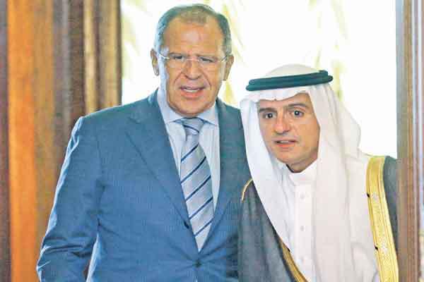 وفي المؤتمر الصحافي المشترك، الذي جمع الجبير ولافروف، لم يتردد الوزير السعودي في الإجابة عن سؤال، مؤكداً أنه «يجب الحفاظ على الجيش السوري» بعد التوصل إلى حلّ سياسي، مشدداً على أهمية «استخدام هذا الجيش في الحرب على داعش».وأكد الجبير أن «بشار الأسد جزء من المشكلة، ولا يمكن أن يكون جزءاً من الحل»، مشيراً إلى أن الخلاف بين بلاده وموسكو بشأن مقررات «جنيف 1» ينحصر في ضم الأسد إلى «الهيئة الانتقالية» أم لا. كما أكد أنه «ليس هناك أي علم لنا بوجود مبادرة روسية لتشكيل تحالف إقليمي مناهض للإرهاب، يضمنا إلى جانب تركيا ونظام الأسد، ولا يمكن أن يكون بيننا وبين الأسد أي تعاون».من ناحيته، تحدث الوزير الروسي عن بحث «تفاصيل أولية» للتنسيق مع الرياض في الحرب على «داعش».في غضون ذلك، أجّل وزير الخارجية الإيراني محمد جواد ظريف أمس، فجأة، زيارة مقررة لتركيا. ووصل ظريف إلى بيروت أمس، حيث يلتقي إلى جانب المسؤولين الرسميين الأمين العام لحزب الله حسن نصرالله، كما يزور اليوم دمشق في أول زيارة له منذ إبرام الاتفاق النووي في 14 يوليو بين طهران والدول الكبرى.وكانت طهران تحدثت عن طرحها مبادرة معدلة لحل الأزمة السورية، وقالت إنها ناقشتها مع مصر وتركيا، وستعرضها على الأمم المتحدة، إلا أنها عادت وتراجعت بعد رصد توتر بينها وبين دمشق على أحد البنود المسربة للمبادرة.وأكدت المتحدثة باسم الخارجية الإيرانية مرضية أفخم أمس أن ظريف سيبحث هذه المبادرة في بيروت ودمشق، مضيفة أن خطتها ترتكز على «احترام الحق المشروع للشعب السوري في الإصلاحات وفي تقرير مصيره، ورفض أي تدخل أجنبي (يستهدف) السياسة المستقلة للحكومة السورية ودعمها للمقاومة، ورفض استخدام الإرهاب لغايات سياسية».