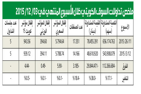 تذبذب حاد جداً في سوق قطروبعكس تداولات أسواق دول مجلس التعاون الخليجي المالية، التي شابها نوع من الاستقرار أو التغيرات المحدودة بين جلسة وأخرى، حيث سيطر القلق والترقب على معظمها، كانت تعاملات سوق الدوحة المالي في حال تذبذب شديد، فقد خسر المؤشر أكثر من 4.5 في المئة خلال جلسته الأولى، واقفل على مستويات نوفمبر 2013، ثم عاد وعوض معظمها خلال الجلسة الثانية مباشرة وبقيم تداولات مرتفعة جدا بلغت 1.2 مليار ريال تقريبا، سجلت خلالها الأسهم القيادية مستويات تاريخية.وكان ذلك متزامنا مع إعادة أوزان مؤشرات مورغان ستانلي للأسواق الناشئة في بداية شهر ديسمبر، وكان ملاحظا حركة شراء من محافظ أجنبية عندما تراجعت أسعار الاسهم القيادية كانت نسبة شراء الاجانب 69 في المئة من إجمالي التداولات لتعود وتبني مراكز بأسعار منخفضة على الأسهم القيادية.وانتهت تعاملات سوق الدوحة على خسارة اسبوعية محدودة لم تزد على 0.4 في المئة تعادل 43 نقطة تقريبا ليقفل على مستوى 10479.28 نقطة.الخسارة القاسية الثانية في مسقطللأسبوع الثاني على التوالي، يسجل مؤشر سوق مسقط المالي خسارة كبيرة بنسبة 2 في المئة هي الاكبر خليجيا، وذلك بعد خسارة مماثلة سجلها خلال الاسبوع الاخير من شهر نوفمبر، وكان أثر انخفاض أسعار النفط العالمية، وكذلك أسعار نفط دول مجلس التعاون الخليجية واضحا على مستوى مؤشر السوق العماني، حيث إن سعر تعادل اسعار النفط في موازنة سلطنة عمان يزيد على 100 دولار، بينما يباع النفط العماني بحدود 35 دولارا خلال الأسبوع الماضي، ولهذا الانخفاض اثر واضح على مستويات الإنفاق الحكومي في الاقتصاد العماني الذي تسعى السلطنة إلى تنويعه وتقليل حجم الاعتماد على النفط فيه. وفقد مؤشر سوق مسقط للأوراق المالية 110.6 نقطة، ليقفل على مستوى 5557.7 نقطة مقتربا من ادنى مستوياته خلال 6 الاشهر الماضية.وتراجع مؤشر سوق المنامة الأدنى من حيث السيولة خليجيا بنصف نقطة مئوية تعادل 5.59 نقطة ليقفل على مستوى 1227.17 نقطة.خسائر محدودة في السوق الكويتيسجلت مؤشرات سوق الكويت للأوراق المالية تذبذبا واضحا بين جلسات الاسبوع حيث الخسائر في بداية الاسبوع عوضتها مكاسب الأسهم القيادية خلال الجلسة الاخيرة من الاسبوع، وانتهت المحصلة الاسبوعية الى خسارة محدودة على مستوى المؤشرات الثلاثة، حيث تراجع المؤشر "السعري" بعُشر نقطة مئوية تعادل 5.90 نقطة، ليقفل على مستوى 5788.74 نقطة، وبذات النسبة كانت خسارة المؤشر "الوزني"، حيث فقد نصف نقطة ليقفل على مستوى 394.11 نقطة، وزادت الخسارة نسبيا على مستوى مؤشر "كويت 15"، حيث بلغت نصف نقطة مئوية تعادل 4.44 نقطة ليقفل على مستوى 939.12 نقطة.وشابت معظم جلسات الاسبوع حالة من الفتور والهدوء عدا الجلسة الاولى وقبل الاخيرة، حيث تراجعت السيولة في بعض الجلسات الى ما دون 10 ملايين دينار كويتي، لتفقد سيولة الاسبوع الاجمالية 38 في المئة من قوتها قياسا على سيولة الاسبوع الاخير من شهر نوفمبر، كذلك تراجع النشاط بنسبة 18 في المئة وعدد الصفقات بنسبة مماثلة، وهي فترة هدوء تاريخية حيث كثيرا ما يتراجع النشاط خلال الاسبوعين الاولين من نهاية العام، وذلك قبل التحضير لسد التزامات مالية خلال الأسبوعين الأخيرين من كل عام، وكذلك بناء مراكز استثمارية وفقا لتقديرات التوزيعات السنوية للأسهم القيادية التي هي أهداف استثمارية للمحافظ والصناديق الكبرى.الرابحوناستمر مؤشر "تاسي" السعودي بالأداء الايجابي، ولكنه بشكل ابطأ من الاسبوع السابق، حيث اكتفى بنسبة 0.4 في المئة التي تعادل 29.46 نقطة، ليقفل على مستوى 7268.02 نقطة، متشبثا بمستويات فوق 7 آلاف نقطة قد تكون بعض التقديرات بخفض محدود للموازنة القادمة للمملكة العربية السعودية تعطي إشارات إيجابية للمستثمرين، ليبقوا على مراكزهم الحالية دون خوف من حالة التراجع المستمر لأسعار النفط، والتي يؤمن كثير منهم بأنها عند مستويات منخفضة جدا.وربح كذلك مؤشر سوق أبوظبي المالي نسبة 0.4 في المئة تعادل 16.53 نقطة، ليقفل على مستوى 4236.39 نقطة، معوضا 