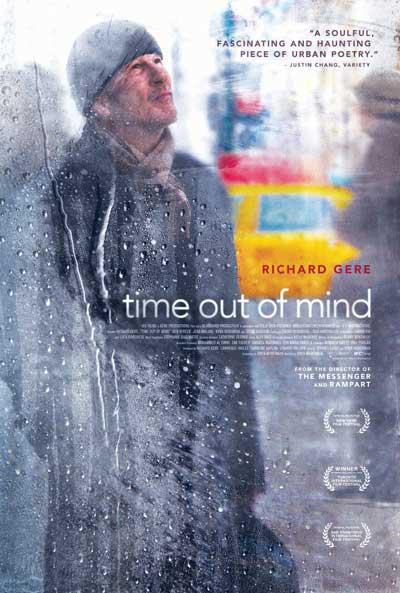 في Time Out of Mind يؤدي ريتشارد غير دور جورج هاموند، وهو رجل مشرّد في شوارع نيويورك، وتجسد جينا مالون دور ابنته، ويشارك ضيوف شرف مثل ستيف بوسكيمي ومايكل ويليامز وبن فيرين. نتيجةً لذلك، يبدو أسلوب الفيلم عالي المستوى لكنّ قصته ركيكة. مع ذلك، إنها تجربة سينمائية طموحة من الناحية الفنية.حين نقابل جورج للمرة الأولى، يطرده متعهد (بوسكيمي) من مبنى غير مأهول، مع أنه يدعي أن امرأة غامضة اسمها {شيلا} سمحت له بالبقاء هناك.