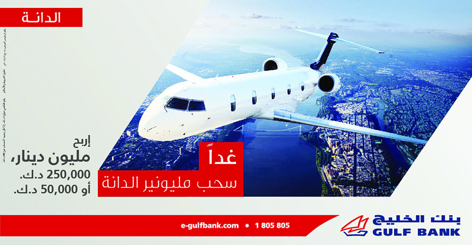 أعلن بنك الخليج إجراء سحب الدانة على جائزة المليون دينار غدا، في السابعة مساء، في "غراند أفنيوز"، داعيا الجميع إلى حضور هذه الفعالية المميزة، لإعلان الفائز بسحب الدانة.وإضافة إلى جائزة المليون دينار من سحب الدانة للفائز المحظوظ، سيتم إعلان الفائزين بجائزتين نقديتين بقيمة 250000 د.ك و50000 د.ك، وسيجرى سحب الدانة تحت إشراف وحضور ممثل عن وزارة التجارة والصناعة، وسيكشف البنك خلال السحب عن برنامج سحوبات الدانة لعام 2016.