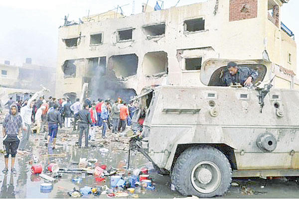 وأفادت وزارة الدفاع بأن نحو 70 إرهابياً هاجموا 5 مواقع بقطاع تأمين شمال سيناء في وقت متزامن، مؤكدة أنها «تعاملت فوراً مع الهجوم، وقتلت 39 إرهابياً، ودمرت 3 عربات دفع رباعي محملة بالمدافع عيار 14.5 ملم المضادة للطائرات». ووفق الشرطة المصرية فإن المسلحين اعتلوا أسطح البنايات وأطلقوا قذائف صاروخية ضد قسم الشيخ زويد، بعدما لغموا الطريق المؤدي إليه، لمنع وصول إمدادات، مشيرة إلى استخدام المهاجمين لأول مرة مضادات لطائرات الأباتشي العسكرية المشاركة في عمليات القوات المسلحة.وبدأت الهجمات المنسقة، التي جاءت بعد 48 ساعة من اغتيال النائب العام المستشار هشام بركات في عملية إرهابية في قلب القاهرة، باستخدام سيارات مفخخة وقذائف هاون، ما أدى إلى تدمير كبير في حاجزي أبورفاعي وصدر أبوحجاج في الشيخ زويد، بحسب مصدر رفيع المستوى أكد لـ»الجريدة» مشاركة أكثر من 300 إرهابي في العملية.ولاحقاً، اجتمع الرئيس السيسي مع قيادة القوات المسلحة لاتخاذ إجراءات أمنية جديدة، في حين أعلن مندوب مصر لدى الجامعة العربية طارق عادل اجتماعاً للمندوبين الدائمين اليوم سيناقش وضع سيناء.