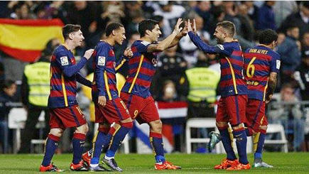 حيث أنة أول فريق يفوز على ريال مدريد في ملعبه السانتياغو بيرنابيو هذا الموسموقد وقف اللاعبون والجمهور دقيقة صمت قبل انطلاق المباراة حدادا على ضحايا التفجيرات الارهابية التي ضربت العاصمة الفرنسية باريس قبل اسبوع واوقعت 130 قتيلاونحو 300 جريح.وفرضت قوات الامن الاسباني اجراءات امنية مشددة حول ملعب "سانتياغو برنابيو" بعد اعتداءات باريس التي استهدفت في احد تفجيراتها ملعب سان دوني حيث كانت تقاممباراة فرنسا والمانيا (2-صفر).وافادت التقارير الى تنفيذ حلقة أمنية ثلاثية حول الملعب مؤلفة من نحو 1200 شرطي مجهزين بالسلاح والخيول والكلاب البوليسية واجهزة الكشف عن المعادن، على غرار ماحصل في نهائي دوري ابطال اوروبا 2010 الذي استضافه الملعب.وابتعد برشلونة بصدارة الترتيب برصيد 30 نقطة بفارق 6 نقاط امام ريال مدريد بالذات الذي بات مهددا بفقدان المركز الثاني لمصلحة اتلتيكو مدريد (23 نقطة) في حال فوزالاخير على ضيفه ريال بيتيس غدا الاحد.ويعد الفريقان الاكثر عراقة في تاريخ الدوري اذ حصد ريال مدريد اللقب 32 مرة مقابل 23 للفريق الكاتالوني، وهما على مسافة بعيدة من اقرب المطاردين اتلتيكو مدريد (10القاب).وجلس الارجنتيني ليونيل ميسي على مقاعد البدلاء في برشلونة لتكون المرة الاولى منذ ثماني سنوات التي لا يكون فيها اساسيا في مباريات الكلاسيكو، حيث خاض 27 مباراةكلاسيكو على التوالي، لكنه دخل في الشوط الثاني بعد غياب شهرين بسبب اصابة تعرض لها في الركبة امام لاس بالماس.واعتمد مدرب برشلونة لويس هنريكي على الثنائي الهجومي المتألق بغياب مسي المؤلف من البرازيلي نيمار والاوروغوياني لويس سواريز، ومعهما البرازيلي الاخر سيرجيروبرتو، وفي الوسط دفع بالكرواتي ايفان راكيتيتش واندرس انييستا وسيرخيو بوسكيتس، وفي الدفاع البرازيلي داني الفيش وجيرار بيكيه والارجنتيني خافيير ماسكيرانووجوردي البا، وفي حراسة المرمى التشيلي كلاوديو برافو.من جهته، دفع مدرب ريال مدريد رافايل بينيتيز بالمهاجم الفرنسي كريم بنزيمة بعد تعافيه من اصابة ابعدته قرابة شهر عن الملاعب الى جانب البرتغالي كريستيانو رونالدووالويلزي كريم بنزيمة.واشرك في الوسط الكرواتي لوكا مودريتش والالماني طوني كروس والكولومبي خاميس رودريغيز، وفي الدفاع البرازيلي دانيلو وفاران وسيرخيو راموس والبرازيلي مارسيلو،وفي حراسة المرمى الكوستاريكي كيلور نافاس.كان برشلونة الطرف الافضل والاكثر خطورة في نصف الساعة الاول فنجح في تسجيل هدفين وحصل على فرص عدة للتسجيل مستفيدا من ارتباك دفاع ريال مدريد.وتحرك ثلاثي هجوم برشلونة نيمار وسواريز وسيرجي رودريغو جيدا، مقابل غياب شبه تام لثلاثي المقدمة في ريال رونالدو وبنزيمة وبايل.وكانت المحاولة الاولى لبرشلونة عبر كرة لنيمار من حدود المنطقة لكن كرته مرت عالية عن المرمى (7).لكن سواريز اصاب الشباك بعد اربع دقائق فقط حين حين تلقى كرة من سيرجي روبرتو الى الجهة اليمنى فتابعها مباشرة في الزاوية اليمنى للمرمى. وسنحت فرصة جديدة لبرشلونة حين انبرى نيمار لتنفيذ كرة من ركلة حرة فارسلها ناحية القائم الايسر لمرمى نافاس الذي تمكن من ابعادها (24).وافلت مرمى ريال مدريد من هدف بعد ثوان قليلة حين تهيأت كرة امام سيرجي روبرتو فاطاح بها عاليا من نقطة الجزاء.واضطر انريكي الى اجراء تبديل اضطراري في الدقيقة 27 فاشرك الفرنسي جيريمي ماتيو مكان ماسكيرانو الذي تعرض الى اصابة.وسدد خاميس رودريغيز اول كرة لريال مدريد على مرمى منافسه لكن كلاوديو برافو التقطها على دفعتين (28).حاول ريال مدريد تهديد مرمى برافو عبر بنزيمة بخجل، الا ان برشلونة عاقبه بشدة بعد ان اضاف الهدف الثاني اثر اختراق لانييستا الذي مرر كرة رائعة الى نيمار داخلالمنطقة فحضرها لنفسه ووضعها على يسار الحارس الذي حاول التقاطها دون جدوى (39).ورفع نيمار رصيده الى 12 هدفا في صدارة ترتيب الهدافين.وافلت مرمى ريال مدريد من هدف ثالث في الوقت الضائع حين قام نيمار بمجهود فردي من الجهة اليسرى قبل ان ي