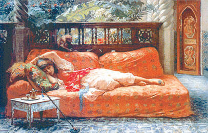 فلما كانت الليلة الثامنة والعشرون، قالت شهر زاد:بلغني أيها الملك السعيد، أن الملاح صار يجدّف مسرعاً إلى أن وصل الزورق بهم إلى البر الثاني، فودعتهما الجارية وقالت لهما: كان قصدي ألا أفارقكما، لكنني لا أقدر أن أجاوز هذا الموضع. ثم عادت بالزورق إلى القصر، بينما جلس علي بن بكار بين يدي أبي الحسن لا يستطيع النهوض. فقال له أبو الحسن: إن هذا المكان غير آمن، ونخشى على أنفسنا من التلف بسبب اللصوص وأولاد الحرام.فقام علي بن بكار متحاملاً على نفسه وهو لا يكاد يستطيع المشي، وكان لأبي الحسن أصدقاء في ذلك الجانب من النهر، فقصد إلى صديق منهم يثق به ويركن إليه، وطرق بابه، فخرج إليه مسرعاً، ورحب بهما، وأدخلهما إلى منزله وجلس يتحدث معهما، وسألهما أين كانا؟ فقال له أبو الحسن: إن عميلاً لي يريد السفر الليلة وعنده مال لي، فخرجت للقائه، واستأنست برفيقي علي بن بكار، ولكننا لم نره، وعدنا بلا شيء وشق علينا العود في هذا الليل ولم نر لنا محلاً غير محلك فجئنا إليك.رحَّب بهما، واجتهد في إكرامهما، وأقاما عنده بقية ليلتهما. ولما أصبح الصباح خرجا من عنده وما زالا يمشيان حتى وصلا إلى المدينة ودخلاها، وجاز على بيت أبي الحسن فتشبث بصاحبه علي بن بكار وأدخله بيته، حيث ناما قليلاً، ثم أمر أبو الحسن غلمانه بأن يفرشوا البيت فرشا فاخراً ففعلوا.وقال لنفسه: لا بد من أن أواسي هذا الغلام وأسليه، فإني أدري بأمره.ولما أفاق علي بن بكار، قام وتوضأ، وصلى ما فاته من الفروض في يومه وليلته، وصار يسلي نفسه بالقراءة. لما رأى منه ذلك أبو الحسن تقدم إليه وقال له: يا سيدي الأليق بما أنت فيه أن تقيم عندي هذه الليلة لينشرح صدرك وينفرج ما بك من كرب الشوق. فقال علي بن بكار: افعل يا أخي ما بدا لك، فإني على كل حال غير ناج مما أصابني! فأمر أبو الحسن غلمانه بدعوة أصحابه، أرباب الأغاني وآلات الطرب والشراب، واستمروا في أكل وانشراح إلى المساء. ثم أوقدوا الشموع ودارت بينهم كئووس المنادمة، وطاب لهم الوقت، فأخذت المغنية العود وغنت تقول:رميت من الزمان بسهم لحظ فأضناني وفارقت الحبايبوعاندني الزمان وقل صبريوإني قبل هذا كنت حاسبلما سمع علي بن بكار كلام المغنية خر مغشياً عليه، ولم يزل في غشيته إلى أن طلع الفجر فأفاق بعد أن يئس منه أبو الحسن، وطلب الذهاب إلى بيته فلم يمنع أبو الحسن خوفاً من عاقبة أمره، فأتاه غلمانه ببغلة وأركبوه، وسار معه أبو الحسن إلى أن أدخله منزله، واطمأن على خلاصه من تلك الورطة الغرامية، ثم ودعه.ألم الفراققالت شهرزاد: بلغني أيها الملك السعيد أن أبا الحسن قال لصاحبه علي بن بكار: يا أخي لا تقطع عني الأخبار. فقال: سمعاً وطاعة. ثم إن أبا الحسن انصرف من عنده إلى دكانه، وصار يرتقب خبراً من الجارية، فلم يأته أحد بخبر، فبات تلك الليلة في داره، ولما أصبح الصباح توجه إلى دار علي بن بكار ودخل عليه، فوجده ملقياً على فراشه وأصحابه حوله، والحكماء عنده وكل منهم يصف له شيئاً ويجسون يده. لما دخل أبو الحسن ورآه تبسم فسلم عليه، وجلس عنده حتى خرج الناس فسأله: ما هذه الحال؟ فأجاب علي بن بكار: لقد شاع أني مريض وتسامع بذلك أصحابي، وليس عندي قوة أستعين بها على القيام والمشي، ولم أزل ملقياً مكاني كما تراني، وقد جاء أصحابي لزيارتي، ولعلك رأيت الجارية أو سمعت بخبر من عندها.فقال له: ما رأيتها منذ فارقتنا على شاطئ دجلة، ويجب أن تحذر الفضيحة وتتجنب هذا البكاء. فقال له علي بن بكار: والله يا أخي إني لا أملك نفسي، وقد بليت بمصيبة كنت في أمن منها، وليس لي من راحة إلى الموت.قال له أبو الحسن: اصبر لعل الله يشفيك. ثم نزل من عنده وتوجه إلى دكانه، فما جلس غير قليل حتى أقبلت عليه الجارية وسلمت، فرد عليها السلام، ونظر إليها فوجدها خافقة القلب يظهر عليها أثر الكآبة فقال لها: أهلا وسهلا، كيف حال شمس النهار؟ أجابت: سوف أخبرك بحالها، لكن كيف حال علي بن بكار؟ فأخبرها أبو الحسن بجميع ما كان من أمره، فتأسفت وتأوهت، ثم قالت: إن حال سيدتي أعجب من ذلك، فقد رجعت إليها بعد أن ودعتك