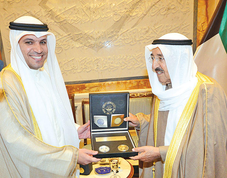 استقبل سمو الأمير الوزير العمير الذي أدى اليمين الدستورية لمناسبة تعيينه وزيراً للأشغال، وتسلم سموه من الهاشل مسكوكة تذكارية بمناسبة تسمية سموه قائداً للعمل الإنساني.