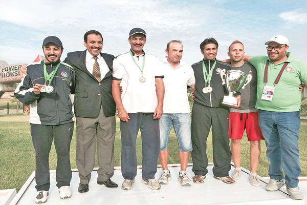 وجاءت الميدالية الذهبية الثانية في منافسات الفرق بحصول منتخب الكويت المكون من زيد المطيري وعبدالعزيز السعد وسعود حبيب بإصابة اجمالية لـ368 طبقا، وحل المنتخب المصري ثانيا بمجموع 364 طبقا والاماراتي ثالثا بـ355 طبقا.وقدم رماة الكويت الستة المشاركين نتائج عالية في المسابقة، وتأهل منهم ثلاثة رماة هم المطيري وحبيب والسعد للدور قبل النهائي الذي يشمل ستة رماة.وحصل المطيري على المركز الاول في الدور قبل النهائي بتسجيله العلامة الكاملة في اصابة عدد الاطباق وهي 15 طبقا بينما تساوي الرماة الخمسة الاخرون بإصابة 13 طبقا ليحتكموا الى الطلقات الترجيحية، ويتأهل منهم حبيب للمرحلة النهائية. واحتكم بقية الرماة الاربعة الى الطلقات الترجيحية لحسم المركز الثالث الذي شارك فيه الرامي الكويتي الواعد عبدالعزيز السعد وثلاثة مصريين هم مصطفى حمدي وفرانكو دوناتو، اضافة الى عزمي محيلبه الذي اقتنص الميدالية البرونزية.وحرمت لائحة البطولة من دخول راميين كويتيين متألقين آخرين هما عبدالله الرشيدي وناصر الديحاني على اعتبار ان لكل منتخب ثلاثة رماة فقط يحق لهم الدخول في الادوار النهائية حتى وإن كانت نتائجهم مؤهلة.وخرج من المنافسة الرامي الكويتي السادس منصور الرشيدي بفارق طبقين، وذلك بعد أن حقق نتائج جيدة رغم حداثة عهده في اللعبة.وشارك في المسابقة التي تضمنت خمس جولات اقيمت على يومين اضافة الى جولتي الدور قبل النهائي والنهائي 23 راميا مثلوا ثمانية منتخبات، هي البحرين والجزائر والمغرب والاردن والسعودية الى جانب الامارات ومصر والكويت.وبنتائج اليوم قبل الاخير تصدرت الرماية الكويتية المركز الاول بثماني ميداليات، منها ثلاث ذهبيات وأربع فضيات وبرونزية. (كونا)