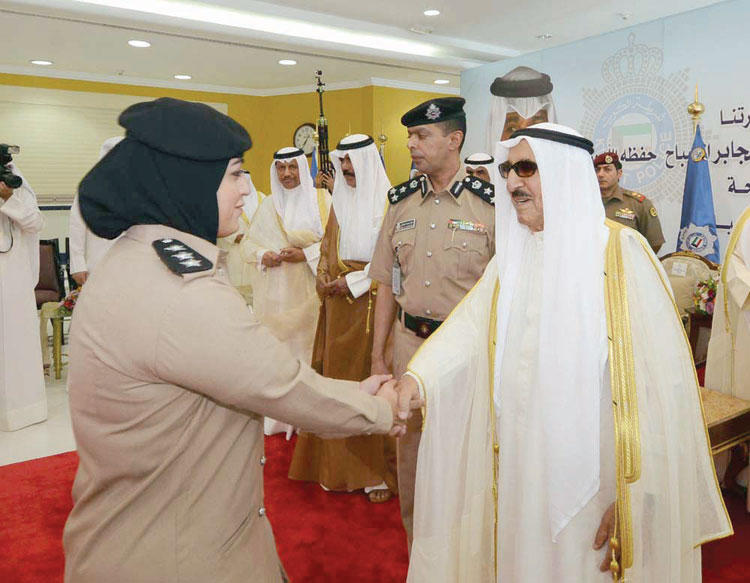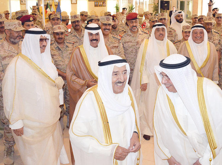 زيارة الجهات الأمنيةمن جانب آخر، زار سمو أمير البلاد لواء مبارك المدرع الخامس عشر بمنطقة عريفجان وكان في استقباله نائب رئيس مجلس الوزراء وزير الدفاع الشيخ خالد الجراح، ورئيس الأركان العامة للجيش الفريق الركن محمد الخضر، وكبار قيادات الجيش ووزارة الدفاع.وجال سموه على عدد من الآليات والمدرعات العسكرية في ميدان اللواء 15، ثم توجه سموه إلى قاعة الاستقبال بنادي الضباط حيث ألقى رقيب أول حزام الشمري قصيدة شعرية لاقت استحسان الحضور.ثم تفضل سموه بالتوقيع على سجل الشرف، بعد ذلك تم تقديم هدية تذكارية لسموه ولسمو ولي العهد بهذه المناسبة.ثم زار سمو الأمير نادي ضباط الشرطة، وكان في استقباله الشيخ محمد الخالد ووكيل وزارة الداخلية الفريق سليمان الفهد، والوكلاء المساعدون بالوزارة.وتم عزف السلام الوطني ثم تفضل سموه بالتوقيع على سجل الشرف. بعدها ألقى وكيل ضابط أحمد مرزوق العازمي قصيدة شعرية لاقت استحسان الحضور.بعد ذلك زار سموه نادي ضباط الحرس الوطني، حيث كان في استقباله سمو الشيخ سالم العلي رئيس الحرس الوطني ووكيل الحرس الوطني الفريق ركن مهندس هاشم الرفاعي وكبار القادة بالحرس الوطني. وألقى النقيب علي غنيم عبدالله قصيدة شعرية لاقت استحسان الحضور، وتفضل سموه رعاه الله وسمو ولي العهد بالتوقيع على سجل الشرف.ورافق سمو الأمير في زياراته سمو ولي العهد الشيخ نواف الأحمد، وسمو الشيخ جابر المبارك رئيس مجلس الوزراء، ونائب وزير شؤون الديوان الأميري الشيخ علي الجراح، ومدير مكتب سموه أحمد الفهد، ووكيل ديوان سمو ولي العهد الشيخ مبارك الفيصل، وعدد من الشيوخ.تبادل التهانيفي مجال آخر، أجرى سمو الأمير اتصالاً هاتفياً مساء أمس الأول مع خادم الحرمين الشريفين الملك سلمان بن عبدالعزيز آل سعود ملك المملكة العربية السعودية الشقيقة، عبر سموه خلاله عن خالص تهانيه وأطيب تمنياته بمناسبة حلول عيد الفطر السعيد، سائلاً المولى عز وجل أن يعيد هذه المناسبة السعيدة على البلدين الشقيقين والشعبين الكريمين وعلى الأمتين العربية والإسلامية بوافر الخير واليمن والبركات، وأن يديم على خادم الحرمين موفور الصحة والعافية.وشكر خادم الحرمين الشريفين سمو الأمير على هذه البادرة الكريمة التي تجسد عمق العلاقات بين البلدين الشقيقين، مبادلاً سموه التهاني بهذه المناسبة، ومتمنياً استمرار هذا التواصل، مبتهلاً إلى الباري تعالى أن ينعم على سموه بدوام الصحة والعافية، ويحقق لدولة الكويت كل ما يتطلع إليه من رفعة ورقي وازدهار في ظل القيادة الحكيمة لسموه.وتلقى سمو الأمير اتصالاً هاتفياً من الرئيس المصري عبدالفتاح السيسي عبر خلاله عن خالص تهانيه وأطيب تمنياته بمناسبة حلول عيد الفطر السعيد، سائلاً المولى عز وجل أن يعيد هذه المناسبة السعيدة على البلدين الشقيقين والشعبين وعلى الأمتين العربية والإسلامية بوافر الخير واليمن والبركات، وأن يديم على سموه موفور الصحة والعافية.وتلقى سموه اتصالاً هاتفياً من أمير قطر الشيخ تميم بن حمد آل ثاني عبر خلاله عن خالص تهانيه وأطيب تمنياته بمناسبة حلول عيد الفطر السعيد. كما تلقى سموه اتصالاً من الأمير مقرن بن عبدالعزيز آل سعود، عبر خلاله عن خالص تهانيه وأطيب تمنياته بمناسبة حلول عيد الفطر السعيد، سائلاً المولى عز وجل أن يعيد هذه المناسبة السعيدة على البلدين الشقيقين والشعبين الكريمين وعلى الأمتين العربية والإسلامية بوافر الخير واليمن والبركات.وتلقى سمو الأمير اتصالاً من رئيس وزراء البحرين الأمير خليفة بن سلمان آل خليفة بمناسبة حلول عيد الفطر السعيد سائلاً المولى عز وجل أن يعيد هذه المناسبة السعيدة على البلدين والشعبين بوافر الخير واليمن والبركات.وتلقى سمو الأمير أيضاً اتصالاً من الرئيس السوداني عمر حسن البشير عبر خلاله لسموه عن خالص تهانيه وأطيب تمنياته بمناسبة عيد الفطر، كما تلقى سموه اتصالاً مماثلاً من شيخ الأزهر د. أحمد الطيب.