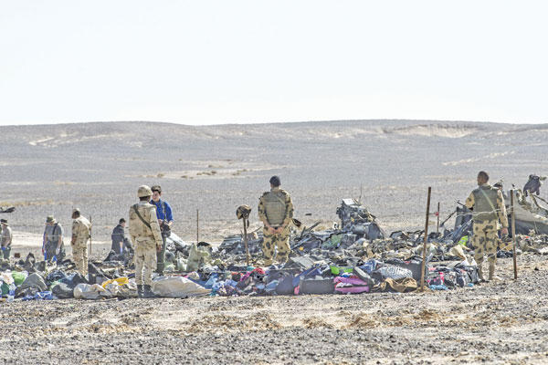 وقال رئيس لجنة التحقيق الروسية فيكتور سوروشينكو من القاهرة، حيث يشارك في لجنة خبراء من روسيا ومصر وفرنسا وأيرلندا للتحقيق في الحادث، إن «انشطار الطائرة حدث في الجو والشظايا منتشرة على منطقة واسعة». وكانت السلطات المصرية أعلنت أنها عثرت على حطام الطائرة وأشلاء في دائرة قطرها 8 كيلومترات، ما يعني مبدئياً - وفق الخبراء- أن الطائرة لم تصطدم بالأرض كتلة واحدة، بل انفجرت في الجو وتفتتت. وتم توسيع عمليات البحث أمس لتشمل دائرة قطرها 15 كيلومتراً، وفق ضابط في الجيش يشارك في عمليات البحث انطلاقاً من قاعدة عسكرية بـ»الحسنة» في قلب منطقة شمال سيناء، على بعد 60 كيلومتراً من مكان تحطم الطائرة.يذكر أن «ولاية سيناء» التابع لتنظيم داعش أعلن مسؤوليته عن إسقاط الطائرة بعد ساعات من الكارثة أمس الأول.تحطم «الروسية»: السيسي للتروي... وموسكو تؤكد انشطارها