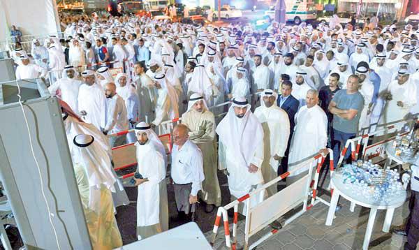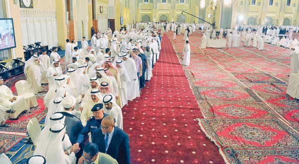 واصل آلاف المواطنين والمقيمين توافدهم أمس الأول على مسجد الدولة الكبير في ثاني ايام العزاء بشهداء جريمة مسجد الإمام الصادق في منطقة الصوابر وسط تنظيم أمني مميز.وشارك في تقديم مراسم العزاء إلى أسر الضحايا وذويهم، جميع أطياف المجتمع من وزراء وأعضاء في مجلس الأمة، في مقدمتهم رئيس مجلس الأمة مرزوق الغانم وكبار المسؤولين بالدولة وكبار القادة بالجيش والشرطة والحرس الوطني، وجمع غفير من المواطنين.