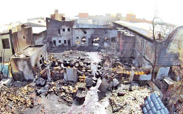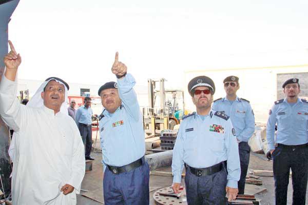تفقد المدير العام للإدارة العامة للإطفاء الفريق يوسف الانصاري أمس موقع حريق مصنع الزيوت بالأحمدي واطلع على الاضرار المادية التي لحقت بالمصنع.
