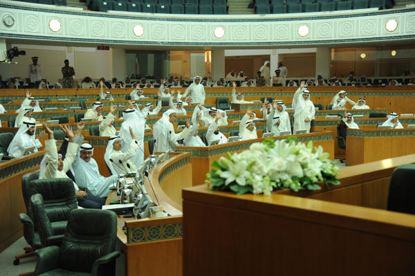 وافق مجلس الأمة في جلسته العادية اليوم على انشاء لجنة مؤقتة لجنة مؤقتة للمرأة والأسرة فاز بعضويتها بالتزكية كلاً من النواب صالح عاشور ومحمد طنا وعبدالله التميمي وعبدالله المعيوف وحمود الحمدان.كما وافق المجلس على طلب الحكومة الذي تقدمت به على لسان وزير المالية أنس الصالح بالتمديد للحكومة حتى نهاية العام لإرسال كافة الردود على ملاحظات ديوان المحاسبة، كما وافق أيضاً على التمديد للجنة التحقيق في تجاوزات مكتب الاستثمار بلندن لمدة 3 أشهر وسط تأييد حكومي التي صوتت بالموافقة على التمديد.ووافق المجلس على طلب نيابي بتخصيص ساعتين من جلسة الغد لمناقشة الوضع الرياضي وإيقاف النشاط الرياضي في الكويت. -----------------------------------------------------------------------------------------------------------------------افتتح رئيس مجلس الأمة مرزوق الغانم جلسة اليوم التي اعتذر عنها كل من الجراح والجسار والصبيح وبدر العيسى وخليل ابل وعودة الرويعي.وعلى جدول أعضاء المجلس عدد من التقارير أبرزها تقرير لجنة الأولويات البرلمانية بشأن متابعة برنامج عمل الحكومة.وسيناقش المجلس تقرير لجنة حماية الأموال العامة البرلمانية عن صفقة الداو كيمكال وعلاقة الشركة الكويتية للاستثمار بشركة أدفانتج للاسستثمارات الإدارية والاقتصادية.
