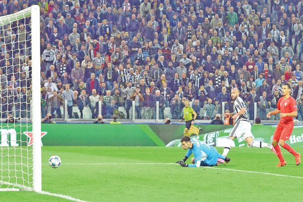 وكان يوفنتوس حقق فوزا مهما على مانشستر سيتي الانكليزي في عقر دار الأخير 2-1 فرفع رصيده الى 6 نقاط في صدارة المجموعة، في حين تغلب اشبيلية على بوروسيا مونشنغلادباخ الالماني 3 - صفر في الجولة الاولى.ويواجه الفريقان صعوبات كبيرة محليا، إذ يقدم يوفنتوس أسوأ بداية موسم له في الدوري الايطالي الذي توج بلقبه في المواسم الاربعة الاخيرة، منذ موسم 1969- 1970 اذ يقبع حاليا في المركز الخامس عشر، في حين يبتعد اشبيلية بفارق نقطتين فقط عن منطقة الهبوط الى الدرجة الثانية بعد 6 مراحل على انطلاق الموسم.وقدم يوفنتوس عروضا قوية اوروبيا في النسخة الماضية حيث وصل الى المباراة النهائية قبل ان يخسر امام برشلونة الاسباني 1-3، اما اشبيلية فتوج بطلا لمسابقة الدوري الاوروبي (يوروبا ليغ)، وبات اول بطل لها يشارك في المسابقة الاوروبية الأم.وحافظ يوفنتوس على سجله خاليا من الخسارة على ارضه في البطولة الاوروبية للمباراة الـ14 على التوالي، ويعود سقوطه الاخير الى ابريل 2013، حين خسر امام بايرن ميونيخ الالماني صفر-2.وبدأ يوفنتوس المباراة مهاجما حيث سيطر على المجريات مبكرا بحثا عن افتتاح التسجيل، وكانت له محاولة اولى من تسديدة قوية للبرازيلي هرنانيس لامست القائم الايمن في الدقيقة العاشرة.قدم يوفنتوس جملا كروية جميلة وكان الكولومبي خوان كوادرادو مصدر الكرات الخطيرة من الجهة اليمنى، حيث حضر واحدة للألماني سامي خضيرة الذي حولها الى الارجنتيني باولو ديبالا الذي سدد كرة رائعة قريبة ايضا من القائم الايمن (18).وكان الشك يحوم حول مشاركة خضيرة لاعب يوفنتوس الجديد الذي لم يشارك معه حتى الآن بسبب الاصابة.وكاد كوادرادو يهز الشباك من كرة ساقطة واجه فيها الحارس سيرجيو ريكو لكنها علت المرمى (23).تراجع اداء صاحب الارض لدقائق ما اتاح الفرصة للاعبي اشبيلية بالاندفاع لكن من دون تهديد مرمى الحارس العملاق جيانلويجي بوفون، لكنه عرف كيف يخرج من الشوط الاول متقدما بهدف للنجم الاسباني الفارو موراتا الذي ارتقى لكرة رأسية ووضعها في الزاوية اليسرى للمرمى اثر تمريرة من اندريا بارزاغلي من الجهة اليمنى. فرصة خطيرة لديبالاوانطلق الشوط الثاني على وقع فرصة خطيرة ليوفنتوس لتعزيز النتيجة حين اخترق ديبالا المنطقة وسدد كرة من مسافة قريبة ابعدها الحارس بقدمه اليمنى في اللحظة المناسبة (50).حاول لاعب الوسط الفرنسي بول بوغبا الغائب تماما عن المجربات والبعيد عن مستواه منذ بداية الموسم متابعة كرة بطريقة اكروباتية لكنها مرت عالية (55).لم يحمل الشوط الثاني الكثير من الفرص من الطرفين، وبدا تأثر اشبيلية بالاصابات في صفوفه واضحا لأن مبادراته الهجومية كانت محدودة، في حين واصل كوادرادو لعب دور المايسترو وكانت له تحركات جيدة وتمريرات ذكية لم يحسن رفاقه الاستفادة منها.وحسم المهاجم سيموني زازا بديل موراتا النتيجة قبل ثلاث دقائق من النهاية حين انطلق بهجمة مرتدة قاطعا اكثر من نصف الملعب قبل ان يضع الكرة في الشباك لحظة خروج الحارس.اغويرو يلعب دور البطلوفي المباراة الثانية ضمن المجموعة ذاتها، عاد مانشستر سيتي من ألمانيا بفوز ثمين على مضيفه بوروسيا مونشنغلادباخ 2-1، بعد ان خطف المهاجم الارجنتيني سيرخيو اغويرو هدفا في اللحظات القاتلة.وافتتح صاحب الارض التسجيل عبر لارس شتيندل (54)، وعادل سيتي عبر اندرياس كريستنسن (65 خطأ في مرمى فريقه) قبل ان يسجل اغويرو هدف الفوز من ركلة جزاء في الدقيقة الاخيرة.وأهدر البرازيلي رافايل ركلة جزاء لمونشنغلادباخ في الدقيقة 20.ولطالما عانى سيتي في زياراته لألمانيا اذ سقط في 6 من مبارياته الثماني التي خاضها فيها.