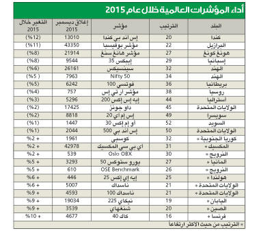 المؤشرات العالمية: ارتفاع 58 مؤشراً في 2015 وانخفاض 33