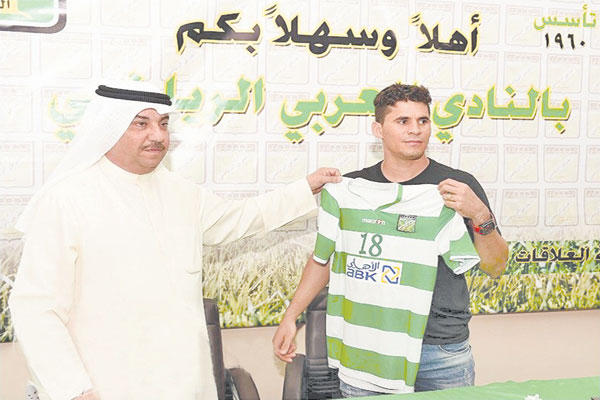 وقع المهاجم البرازيلي تياغو رسميا على عقد انضمامه للعربي، خلال المؤتمر الصحافي الذي اقيم مساء امس الاول على مسرح احمد الرومي بالنادي، بحضور رئيس النادي جمال الكاظمي، ونائبه عبدالعزيز عاشور، ونائب مدير جهاز الكرة مؤيد شهاب.وأعلن الكاظمي، في تصريح، أن تياغو ارتبط بموجب هذا العقد مع الاخضر لثلاثة مواسم مقابل 600 الف دولار في الموسم الواحد (200 ألف مقدم عقد والبقية تأتي على دفعات شهرية)، مبينا وجود بند في العقد يسمح بفسخه بعد مرور الموسم الاول. من جانبه، أكد عبدالعزيز عاشور أن التعاقد مع اللاعب جاء بعد دراسة حثيثة ومتابعة دقيقة واستشارة العديد من المختصين فنيا داخل البلاد وخارجها، خصوصا في تركيا، إذ كان يلعب في دوري الدرجة الثانية، وحقق لقب افضل محترف في الموسم، لافتا الى ان مسألة التعاقد معه مرت بمنافسة قوية مع العديد من الاندية التركية، ونادي ام صلال القطري.