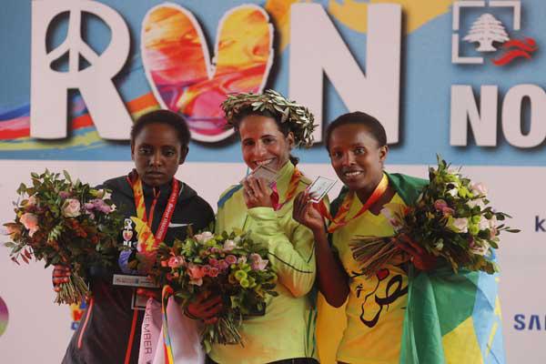 وسجل ليمو زمن 04;11ر2 س وهو أفضل توقيت في تاريخ السباق لدى الرجال، وكان التوقيت السابق بحوزة الاثيوبي تاريكو جوفار بزمن 17ر11ر2 س سجله عام 2011.وتفوق ليمو على الاثوبيين أبديلا غودانا الذي حافظ على الميدالية الفضية للسباق اللبناني بزمن 02ر13ر2 س وحسين محمد الذي قطع المسافة بزمن 49ر14ر2 س. وقطعت العداءة المغربية كلثوم بوعسرية مسافة السباق (195;42 كلم) بزمن 05ر36ر2 ساعة، علما بان الرقم القياسي للسباق مسجل باسم الاثيوبية مولاهابت تسيغا بزمن 12ر29ر2 س حققته العام الماضي.وتقدمت بوعسرية على الاثيوبيتين ميزيريت ابيباياهو (26ر36ر2 س) وبيزونيش اورغيسا (07ر42ر2 س).وجاء تتويج ليمو وبوعسرية تحت أنظار "العداءة الذهبية" البريطانية باولا رادكليف حاملة الرقم القياسي العالمي للسباق الطويل والتي حضرت السباق بصفة ضيفة شرف.وحضر السباق الذي أجري في ظروف مناخية ممتازة شخصيات رسمية عدة خاض بعضهم سباق العشرة كيلومترات، الى جانب سفراء دول أوروبية وأميركية وآسيوية وأفريقية.