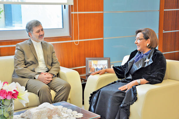 بحثت مديرة الجامعة العربية المفتوحة "AOU"، د. موضي الحمود، مع السفير الإيراني لدى الكويت د. علي عنايتي العلاقات بين الكويت وإيران في المجالين العلمي والثقافي، وفرص تعزيز التعاون وتنمية العلاقات بين الجامعة والجامعات الإيرانية في ما يخص المجالات الأكاديمية والبحثية.وأكدت الحمود، خلال استقبالها السفير عنايتي ووفدا من السفارة الإيرانية، أهمية الدور الكبير الذي يقوم به رئيس وأعضاء مجلس أمناء الجامعة، إلى جانب نواب المدير وعمداء ومديري فروع الجامعة في كل ما شهدته من تطور وما حققته من إنجاز وتوافق في الرؤى التي تستهدف في مجملها ترجمة الأهداف النبيلة والرسالة السامية للجامعة ورؤى صاحب فكرتها ومؤسسها الأمير طلال بن عبد العزيز رئيس مجلس الأمناء.