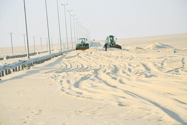 أكد وكيل الصيانة في وزارة الأشغال العامة محمد بن نخي حرص الوزارة على سرعة إزالة كثبان الرمال (السافي) من الطرق السريعة وتسيير حركة المرور عليها.