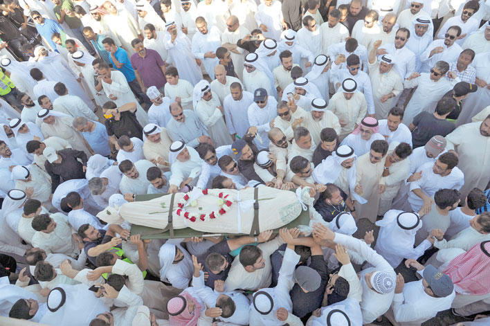 شيع عشرات الآلاف مساء أمس جثامين شهداء الحادث الإرهابي بمسجد الإمام الصادق إلى مثواها الأخير في مقبرة الصليبيخات.وشكل الحشد الكبير من أهل الكويت الرد الحقيقي على الجريمة وأبعادها، وجسد المواطنون تضامنهم في وجه محاولات زرع الفتنة والمساس بأمن الوطن واستقراره.