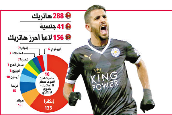 من المعروف أن قيمة أي لاعب كرة قدم تكشف عن مستواه وإمكاناته، لكن بعض اللاعبين يقدِّمون الكثير، وُيثبتون عكس هذه النظرية، وهذا ما أكده لاعب الوسط الجزائري الدولي رياض محرز، الذي يُعد أحد أبرز الصفقات بالدوري الإنكليزي الممتاز في كرة القدم.وبعد تسجيل ثلاثية لفريقه، ليستر سيتي، في مرمى سوانسي سيتي، السبت الماضي، دخل النجم العربي تاريخ النادي والدوري الإنكليزي في آن واحد، حيث أصبح محرز أول لاعب جزائري يسجل "هاتريك" في الدوري الإنكليزي الممتاز، وأول لاعب في صفوف ليستر سيتي يسجل ثلاثية، منذ أن فعل ذلك ستان كوليمور عام 2000.
