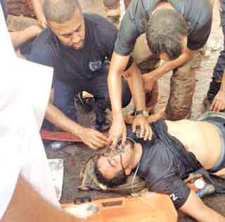 وذكر الديحاني انه تم على الفور تحريك مركز اطفاء الاحمدي الى موقع البلاغ الا ان ضابط الفرق ونظرا لضخامة الحريق طلب اسنادا فوريا من غرفة العمليات وتم على الفور تحريك مراكز اطفاء الفحيحيل والمنقف ومبارك الكبير للمواد الخطيرة ومشرف والهلالي والعمليات والاسناد بقيادة المدير العام للادارة العامة للاطفاء الفريق يوسف الانصاري ومساعد المدير العام لشؤون المكافحة العميد جمال البليهيس ومدير مركز العمليات المركزية العميد طارق السبتي ومدير اطفاء محافظة الاحمدي بالانابة المقدم احمد الهبدان.واضاف الديحاني ان رجال الاطفاء شرعوا فور وصولهم في عزل موقع الحريق في محاولة لمنع اتساع رقعة النيران التي كانت تزيد بشكل كبير بسبب محتويات مصنع الزيوت سريعة الاشتعال، وكذلك الانفجارات القوية التي حدثت جراء براميل الزيوت الموجودة في المصنع والذي يمتد على مساحة 1000 متر مربع، مشيرا الى ان فرق الاطفاء مازالت تكافح الحريق الضخم وتحاول منع امتداده حتى لحظة اعداد الخبر.واوضح ان الساعات الاولى للحادث اسفرت عن اصابة 6 اطفائيين بحالات اختناق واجهاد حراري فضلا عن اصابة اطفائي بحروق، مشيرا الى ان جميع المصابين عولجوا في موقع الحادث من قبل فنيي الطوارئ الطبية، مبينا ان عدد رجال الاطفاء الذين يكافحون الحريق بلغ 100 رجل اطفاء.