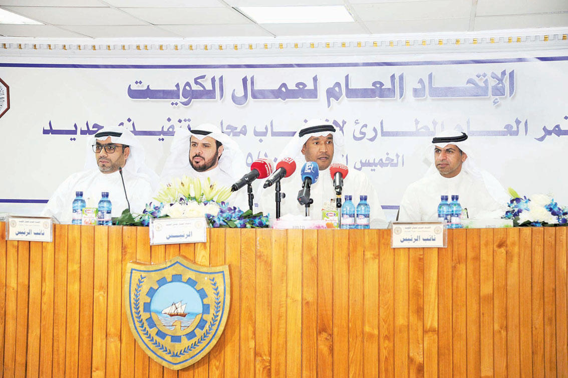 عقد الاتحاد العام لعمال الكويت أمس المؤتمر العام الطارئ لانتخاب مجلس تنفيذي جديد.وقال رئيس اللجنة الخماسية للاتحاد يحيى الدوسري، «إننا حريصون على وحدة الصف العمالي والوقوف في مواجهة كل من يحاول العبث بدستور الاتحاد أو التأثير على مسيرة الإنجازات والمكاسب التي تحققت عبر مراحل طويلة من النضال النقابي»، لافتاً إلى أن عنوان المرحلة القادمة هو المصلحة العامة للطبقة العاملة فوق أي مصالح ومنفعة شخصية.