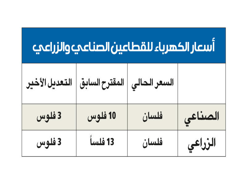 كشفت اللجنة الاقتصادية في مجلس الوزراء أن الاستشاري العالمي المكلف دراسة الدعم، شركة «أرنست آند يونغ»، انتهى في ضوء التحفظات التي طُرِحت في اجتماع الأسبوع الماضي مع اللجنة، إلى تعديلات، أبرزها رفع الأسعار المقترحة للطاقة الكهربائية في القطاعين الزراعي وصناعات الشعيبة فلساً واحداً للوحدة، لترتفع من فلسين إلى 3 بدلاً من 13 كما كان يقضي الاقتراح السابق للاستشاري.وقالت اللجنة، خلال اجتماع أمس، إن ذلك التعديل جاء بناء على طلبها، مؤكدة أنه «لم يتم حتى الآن الاتفاق على قرار نهائي بخصوص أسعار البنزين أو أسعار الكهرباء الجديدة المقترحة، في انتظار استكمال المناقشات الأسبوع المقبل».