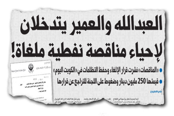 تفاعلاً مع ما كشفته «الجريدة» في عددها أمس الأول من مخالفات متعلقة بإحياء مناقصة الأنابيب النفطية بعد إلغائها من لجنة المناقصات المركزية، أكدت مصادر مسؤولة في هيئة مكافحة الفساد أن الهيئة تتحرى حالياً عن تلك المخالفات، مع انتظارها بلاغات جدية بشأنها مدعمة بالمستندات للتحقيق فيها، لافتة إلى أن الهيئة جادة في إحالة قضايا الفساد إلى النيابة بعد إخضاعها للتحقيق والدراسة.وفي هذا السياق وفي ثاني واقعة تتضمن كشفاً لحالات الفساد، أعلنت الهيئة أمس أنها أحالت وكيل وزارة مساعداً ومدير إدارة في إحدى المؤسسات الحكومية إلى النيابة العامة، بتهم التزوير والاستيلاء على المال العام.