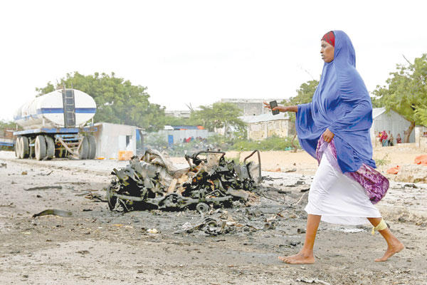 في هجوم هو الأول من نوعه، استهدفت أمس حركة «الشباب المجاهدين» الإسلامية المتشددة المرتبطة بتنظيم «القاعدة»، موكباً دبلوماسياً تابعاً للسفارة الإماراتية في مقديشو.واصطدمت سيارة يقودها انتحاريان بالسيارة العسكرية التي ترافق موكب سفير الإمارات في العاصمة الصومالية، ما أسفر عن مقتل 10 أشخاص، إضافة إلى المهاجمين.