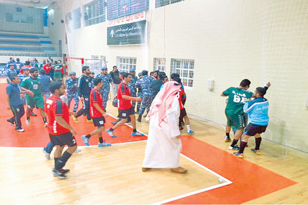 في مباراة شهدت ثوانيها الأخيرة أحداث شغب وتشابكاً بالأيدي بين اللاعبين، سجل أحمد حسين هدفاً من ضربة جزاء في الثواني الثماني الأخيرة انتزع به العربي تعادلاً ثميناً من منافسة خيطان بنتيجة ٢٥-٢٥ في المباراة التي جمعت الفريقين، أمس، علي صالة الشهيد فهد الأحمد بالدعية في افتتاح الجولة السابعة من الدوري العام لكرة اليد، وكان العربي أنهى الشوط الأول لمصلحته ١٣-١٢ ليرفع رصيده إلى ١١ نقطة ارتقى به للمركز الثاني مؤقتاً بينما خيطان بـ ٦ نقاط في المركز الثامن .جاءت المباراة سريعة وحماسية وسيطر التعادل علي أغلب فتراتها، وفي الثواني الثماني الأخيرة والنتيجة تشير إلى تقدم خيطان ٢٥-٢٤، احتسب حكم اللقاء ضربة جزاء للعربي عندها دفع لاعب خيطان عبدالعزيز الفرحان لاعب العربي وليد القلاف واسقطه أرضا لتشتعل الأحداث ويتشابك اللاعبون بالأيدي وتتدخل الجماهير بعد نزولها إلى أرض الملعب، ولولا تدخل رجال الأمن للسيطرة على الموقف لتفاقمت الأوضاع. وبعد توقف عدة دقائق استؤنفت المباراة بعد طرد لاعبي خيطان عبدالعزيز الفرحان وحسين فاضل، ولاعب العربي طلال عباس ونجح حسين في تسجيل هدف التعادل.