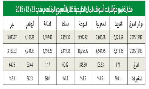 تقرير أسواق المال الخليجية الأسبوعي : مكاسب جيدة لمعظم الأسواق... والخسائر في السعودية والكويت