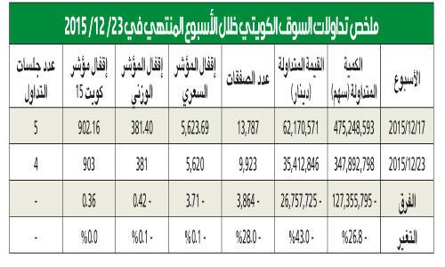 إعلانات التوزيعات السنوية لعام 2015 أثرت في أسهم الشركات المعلنة و«الكويتي» مستقر تقريباً