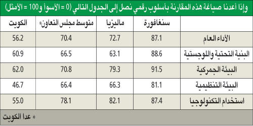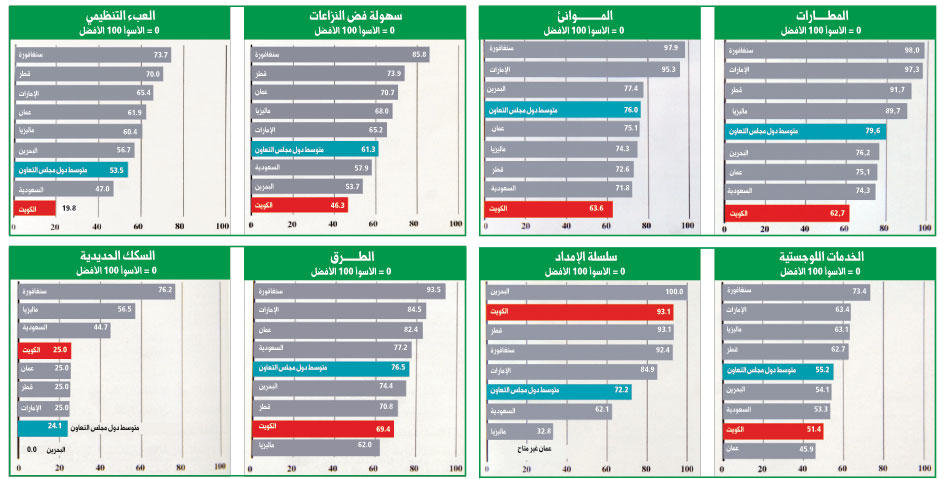 قالت "غرفة التجارة" إن الكويت جاءت في المركز 60 من حيث التيسير التجاري، والمرتبة الـ38 من حيث البنية التحتية والخدمات اللوجستية، والمرتبة الـ57 من حيث البيئة الجمركية، والـ60 من حيث البيئة التنظيمية، والـ74 من حيث استخدام التكنولوجيا.