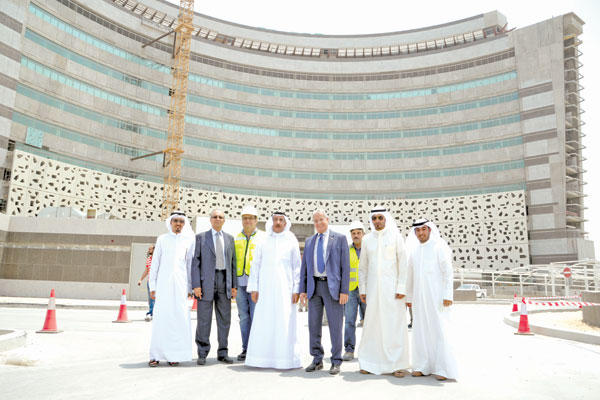 كشف وزير الأشغال العامة وزير الكهرباء والماء م. أحمد الجسار عن تسليم مستشفى جابر الى وزارة الصحة نهاية العام الحالي، لافتا الى أن هناك بعض الأعمال الهامشية التي لم تنجز، ولكنها لن تؤثر على سير الخدمات التي سيقدمها المستشفى.وأضاف الجسار، في تصريح صحافي خلال الجولة التي قام بها على المستشفى لمتابعة سير العمل فيه صباح أمس، إن وزارة الصحة ستشغل المستشفى تدريجيا مطلع العام القادم، بعد أن يتم تركيب الأجهزة والمعدات اللازمة، موضحا أن الزيارة التي قام بها أمس كانت لمتابعة كل ما من شأنه دفع مسيرة الأعمال والاطلاع على مراحل الانتهاء في مختلف مكونات المشروع، بعد الاجتماع المغلق مع المقاول للتباحث ومناقشة جميع ما يلزم من أجل انسيابية العمل بالمشروع.السادس عالمياً وقال الجسار إن مستشفى الشيخ جابر يعد أكبر مستشفى بالشرق الأوسط والعالم العربي وسادس أكبر مستشفى في العالم، حيث يشتمل على خدمات واسعة للمرضى والمراجعين، مبينا أنه يحتوي على 1168 سريرا مزودا بثلاث مهابط لطائرات الهليكوبتر، فضلا عن توافر 5 آلاف موقف لمركبات المراجعين، و50 موقفا لسيارات الإسعاف، كما يحتوي على ملجأ للحماية.وقال الجسار إن المستشفى يعد مركزاً طبياً متكاملا، حيث يتكون من 5 أبراج لغرف المرضى بارتفاع 9 طوابق لكل برج، مع القدرة على التوسعة المستقبلية بإضافة برج سادس، إضافة الى العيادات الخارجية المتكاملة بكل التخصصات، ومركز أسنان تخصصي، ومبنى التشخيص والعلاج الذي يحتوي على غرف العمليات المتنوعة والمختبرات وبنك الدم والأشعة ومختلف أنواع الخدمات الطبية الأخرى، مشيرا الى أنه يحتوي على 7 مداخل ولكل مدخل 6 مصاعد للزوار، إضافة الى مصاعد للمرضى والخدمات بعدد إجمالي يصل لـ150 مصعدا تقريبا.مول طبيوأضاف: يحتوي المستشفى كذلك على مركز للكوارث والحوادث، وهو الأول من نوعه في الكويت، مع توافر مول طبي يمتد بطول 1 كيلومتر ويحتوي على محال متنوعة واستراحات متعددة للمرضى والمراجعين.وقال الجسار إنه تم انشاء محطة كهربائية مركزية بعمق 19 مترا تحت الأرض، في سابقة هي الأولى من نوعها، حيث تغطي احتياجات المستشفى وبنسبة 100 في المئة، لافتا الى أنه للمرة الأولى في الكويت يتم تطبيق نظام الطوابق الخاصة بالخدمات الكهربائية والميكانيكية فوق غرف العمليات والأجزاء المهمة، بحيث تتم أعمال الصيانة من الطابق الأعلى، من دون تعطيل العمل، موضحا أن المستشفى يحتوي أيضا على مبنى خاص لسكن الطواقم الطبية المختلفة من أطباء وممرضين وخدمات طبية أخرى، إضافة الى مبنى الإدارة وقاعة مؤتمرات كبرى. وبين الوزير أن مشروع المستشفى يقام على 220 ألف متر مربع، وبمجموع مساحة بناء تصل لـ725 ألف متر مربع، كما أن كمية الخرسانة المستخدمة بالمشروع تبلغ 650 ألف متر مكعب، في حين تصل كمية حديد التسليح المستخدمة به الى 85 ألف طن.
