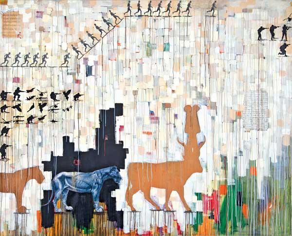 يبتكر حافظ هذه الأعمال دامجاً ما عمل به سابقاً قبل ثماني سنوات من فكر تجريدي مع ما يقدمه حالياً من تصوير هيروغليفي، موضحاً بذلك ميوله الإبداعية نحو تشكيل سياق يجمع لحظة من تشابك عوالم متباينة.