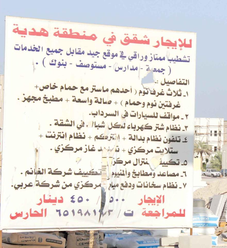 كما يحدد القرار نسب البناء في السكن النموذجي والارتفاعات القصوى، وهو الأمر غير المعتمد في مباني المنطقة التي يخشى أهلها أن تكون مقدمة لفتح الباب أمام سكن غير الكويتيين، ولاسيما العزاب، وخصوصاً أن «هدية» قريبة نسبياً من مناطق الكويت، وتشكل منطقة استقطاب للسكن فيها.علما بأن بعض الأهالي يتوقع وفق معدلات البناء القائمة أن يتضخم عدد السكان فيها عدة مرات عند اكتمال إشغال المباني الجديدة.«الجريدة» سلطت الضوء على هذه القضية من خلال التحقيق التالي:هل تسير منطقة هدية المشهورة بهدوئها على خطى خيطان والجليب وغيرهما من مناطق الاكتظاظ السكاني والمخالفات التي لا حصر لها؟سؤال يجول في أذهان سكان المنطقة التي أفاقت قبل سنوات قليلة على وقع إنشاء منازل جديدة، لا لغرض السكن الخاص بل للاستثمار، وانتشرت لافتات "شقق للإيجار" في كل زاوية وعند كل إشارة مرور، فأصبح كل منزل بجانبه عشرات المنازل ذات الطبقات الأربع وما فوق، وبواقع ثماني شقق للمنزل الواحد في أقل تقدير.الواقع الجديد حوّل منطقة هدية الى ما يشبه العشوائيات، ولكن بمظهر أكثر حضارة، وهو الأمر الذي حول الدخول الى الشارع الرئيس أو الخروج منه، مسألة صعبة، لكثرة السيارات المتوقفة على جانبي الطريق، غير الانقطاعات المتكررة للكهرباء من جراء الأحمال الزائدة، فالمنزل الذي خصص له عداد يلبي حاجة أسرة أو أسرتين كحد اقصى، بات يغذي 8 الى 12 شقة في البنايات الاستثمارية.هذه المسألة فتحت باب التساؤلات عن دور بلدية الكويت بعد توجه تجار العقار الى السكن الخاص، عوضا عن الاستثمار في المناطق الاستثمارية، والإجراءات التي اتخذتها البلدية للحد من مخالفات البناء والقوانين المعتمدة في مناطق السكن النموذجي.سلسلة «استثمارية»بداية، يقول حمود النثري أحد سكان هدية إنه بعد أن بيعت الأراضي المجاورة له، تم بناء سلسلة منازل "استثمارية" متجاوزة كل قوانين البناء، الأمر الذي تسبب في ازدحام الشارع، لدرجة أن سيارات البلدية لا تستطيع المرور كل يوم لأخذ القمامة من دون أن تحتك أو تخدش السيارات المتوقفة، وفي كثير من الأحيان تتجنب المرور في الشوارع الداخلية، وتكتفي بالطريق الرئيس، الأمر الذي جعلنا نشتكي عدة مرات، لكن لا مجيب لشكوانا.وتابع أنه قبل أشهر حصل حريق في أحد المنازل المجاورة لبيته، لكن لازدحام الشارع كان من الصعب وصول سيارات الإطفاء، إلا بعد أن أبعد السكان سياراتهم التي تعيق المرور في الشارع.بدوره، يقول محمد العجمي إن منطقة مثل هدية من المفترض أنها "نموذجية" لا تتحمل مثل هذه الأعداد من السكان القادمين فجأة، مشيراً الى إن البلدية تقاعست، فلم يعد أي شارع في منطقة هدية إلا به العديد من المباني المخالفة، مع ضيق الشوارع وعدم وجود أماكن مخصصة لمواقف السيارات، والسؤال: كيف استطاع ملاك هذه المباني الحصول على أذونات البناء وإيصال التيار؟وأضاف: ليس لدينا سوى جمعية تعاونية واحدة ومستوصف واحد، وزيادة عدد السكان من دون دراسة، ستؤثر على الخدمات العامة، فمازالت البيوت الاستثمارية في تزايد مستمر، ولا توجد مشاريع عامة جديدة لسد الحاجة.فتح الملف ودعا العجمي وزير البلدية الى فتح ملف هذه التجاوزات ومحاسبة المسؤول عنها، لأن الأمور تجاوزت كل حد مسموح ومرشحة للتفاقم في حال عدم التدخل من قبل المسؤولين.من جهته، حمل علي الكندري بلدية الكويت مسؤولية انتشار هذه الظاهرة، فهي - على حد قوله - ساهمت وأعطت التراخيص للمستثمرين في بناء عمارات بين السكن الخاص، مضيفاً أنه من غير المعقول قبول هذا الأمر وأن يكون عن يمينك وشمالك شقق، فإذا قبلنا اليوم بهذا الوضع، فلن نتعجب بعدها إذا تم تأجيرها للعزاب، فلا رادع ولا مراقبة، داعياً نواب الدائرة الخامسة الى التحرك في هذا الشأن.وقال الناشط التربوي، رئيس شبكة المعلم الإلكترونية، خالد العتيبي، إنه من المشكلات المترتبة على تجاوز البناء في المناطق المخصصة في السكن الخاص مواجهة وزارة التربية مشكلة التضخم في أعداد القاطنين والذي لم يكن