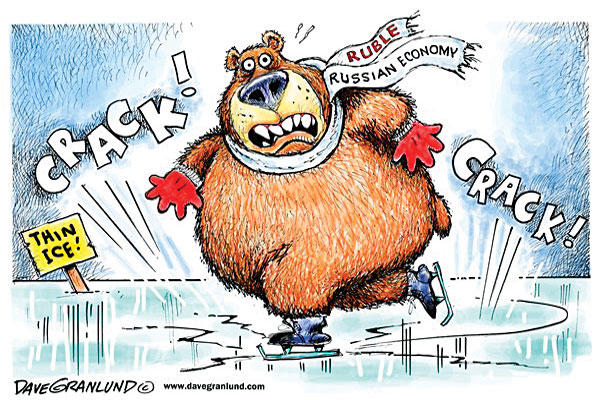 كان للانحدار الحاد لأسعار النفط العالمية تداعيات كبرى على الاقتصاد الروسي، إذ يُشكل النفط والغاز أكثر من 60 في المئة من صادرات روسيا، وتشكل السلع الأساسية الأخرى جزءاً كبيراً من باقي الصادرات.