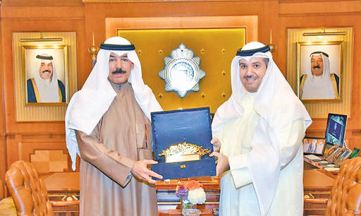 استقبل نائب رئيس مجلس الوزراء وزير الداخلية الشيخ محمد الخالد، صباح أمس، وكيل وزارة الداخلية المساعد لشؤون تكنولوجيا المعلومات والاتصالات الشيخ مشعل الجابر، الذي قدم جائزة أفضل برنامج خدمي على الأجهزة الإلكترونية، التي حصلت عليها وزارة الداخلية بمناسبة فوزها بالمركز الأول في المسابقة التي نظمتها مملكة البحرين الشقيقة على نطاق دول مجلس التعاون في مجال تطبيقات الأجهزة الذكية للخدمات الالكترونية، والتي أقيمت برعاية سمو رئيس وزراء البحرين الشيخ خليفة بن سلمان.وأكد الجابر عقب اللقاء أن توجيهات الوزير الخالد في مجال الانتقال إلى المرحلة الثانية والجديدة من تطوير الخدمات الالكترونية على الأجهزة الذكية ستتم في أقرب وقت ممكن.