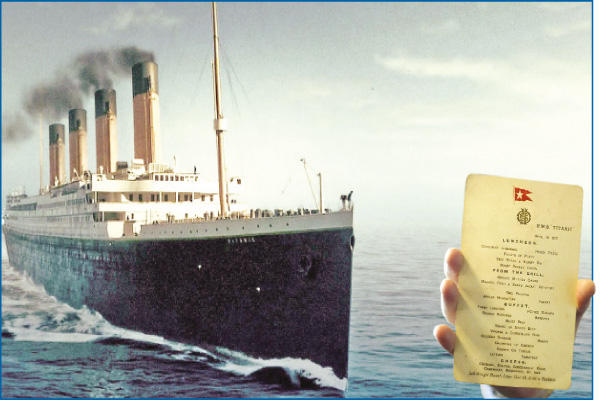 بيعت قائمة الطعام الأصلية التي تضمنت أصناف الغداء الأخير في الدرجة الأولى على متن سفينة "تايتانيك" بـ88 ألف دولار، لأحد هواة جمع التحف القديمة في مزاد علني على شبكة الإنترنت.وكان أحد ركاب الدرجة الأولى في السفينة وهو أبراهام لينكولن سالومون قد حمل معه قائمة الغداء، قبل أن يقفز برفقة عدد قليل من الأشخاص إلى متن قارب نجاة، وذلك عندما بدأت "تايتانيك" تغرق في مياه المحيط الأطلسي الجليدية.