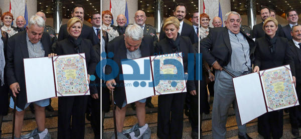 فقد رئيس لجنة هلسكنكي في كرواتيا سرواله عندما كانت رئيسة البلاد تسمله شهادة تقدير على الأعمال التي قام بها.